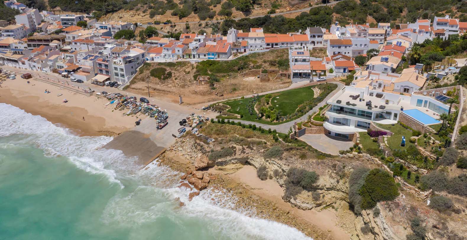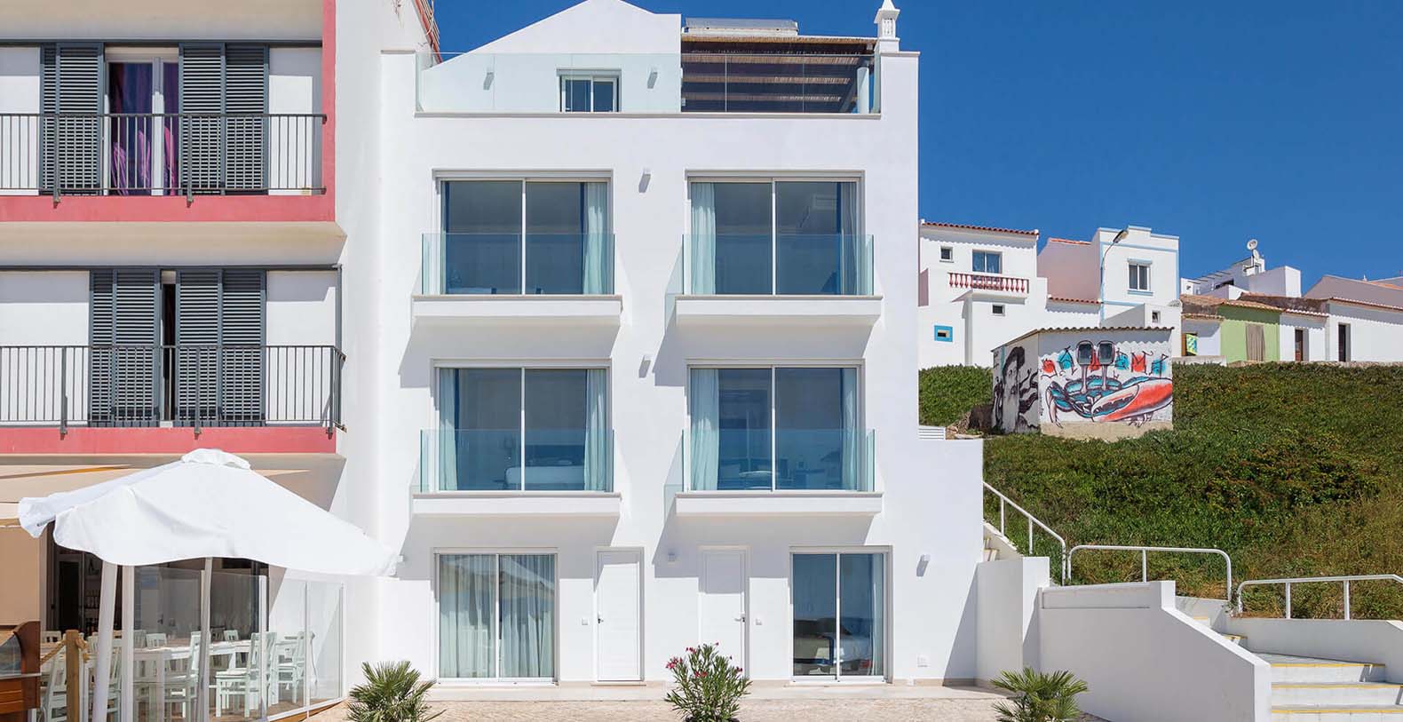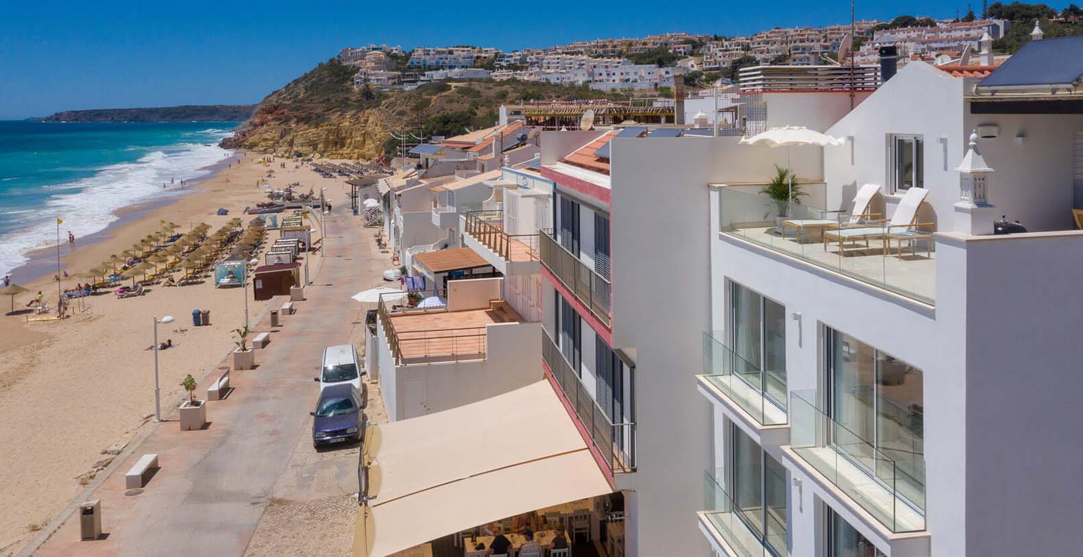 On the top floor, a fully-furnished sunroof terrace with an outdoor dining area can be used by all units. While the shops and restaurants of Salema are an easy walk away, the main attraction is the postcard-worthy stretch of golden sand beach located a mere 3 metres from the villa, meaning you can roll out of bed and onto the beach in seconds.