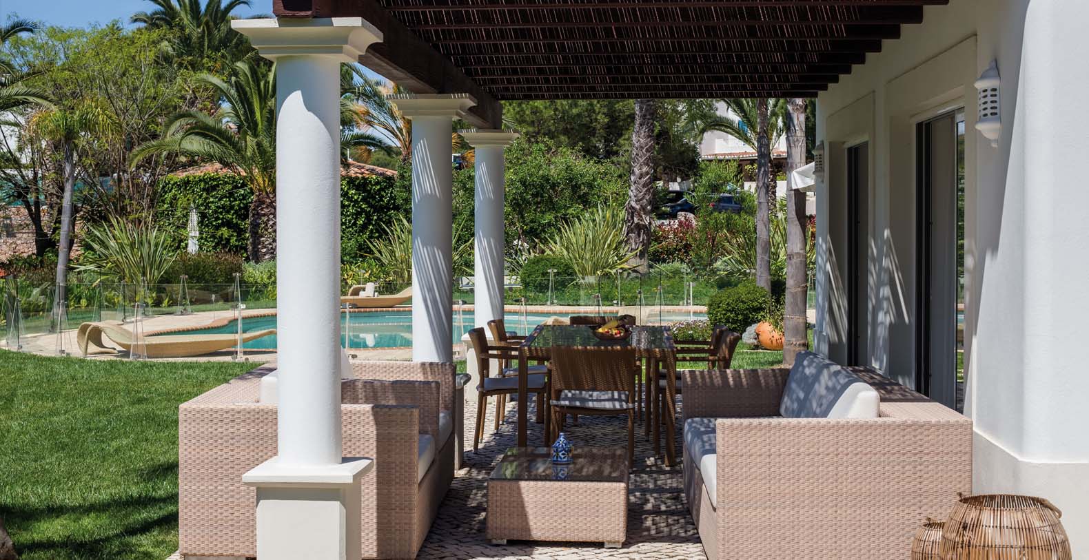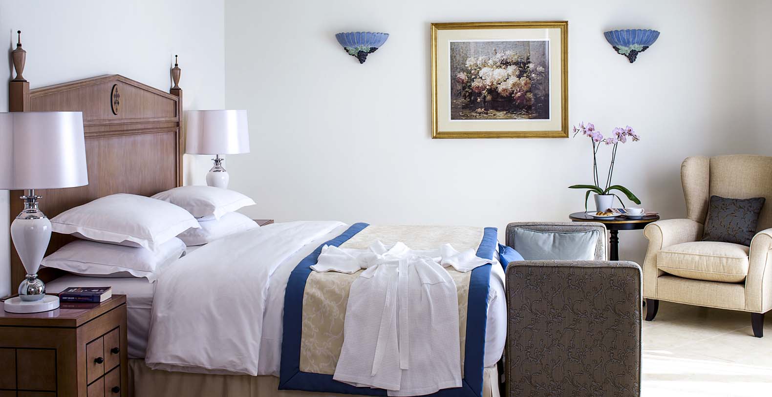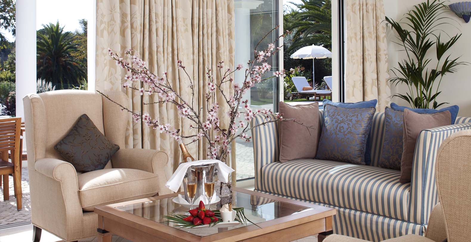 Each of the elegant bedrooms offers a large luxury bathroom and walk-in closet, complemented by a comfortable lounge with a private terrace leading on to the gardens and views across the Atlantic Ocean.