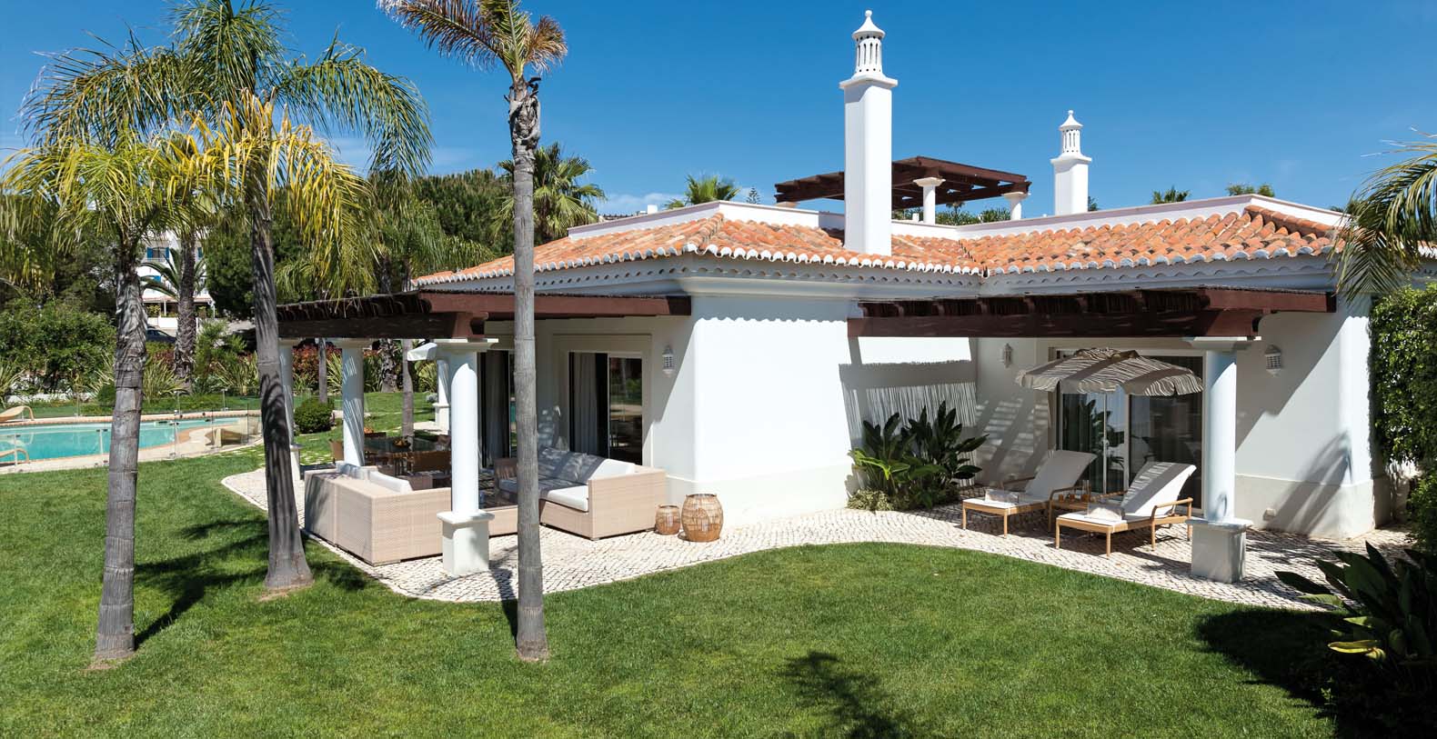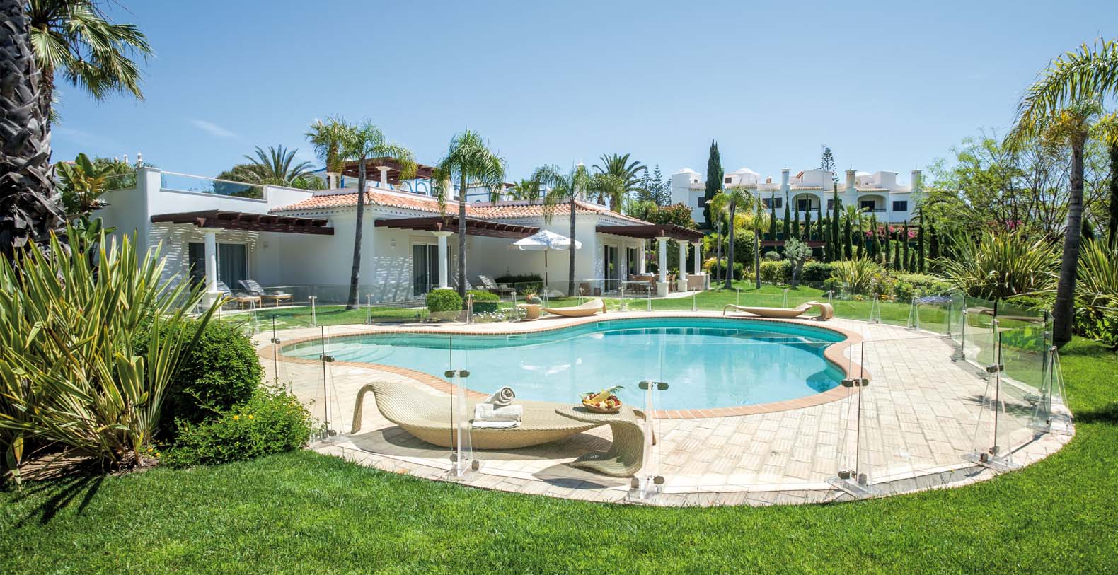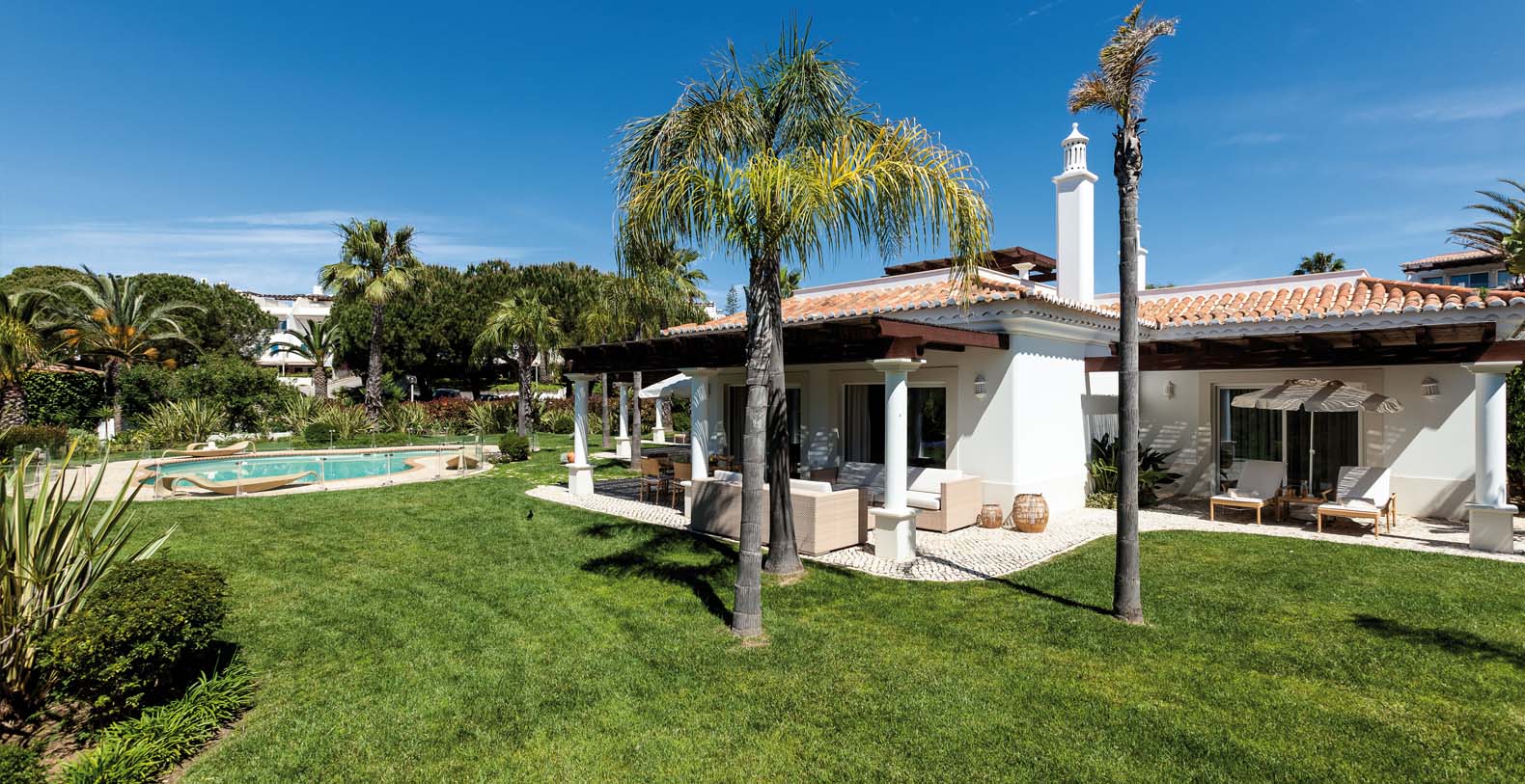 This is a luxury 3-bedroom ground floor villa with private pool, extensive gardens and terraces and stunning views of the Atlantic Ocean, located in a secluded part of the resort overlooking the golf courses.