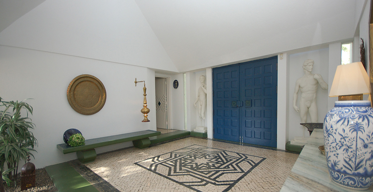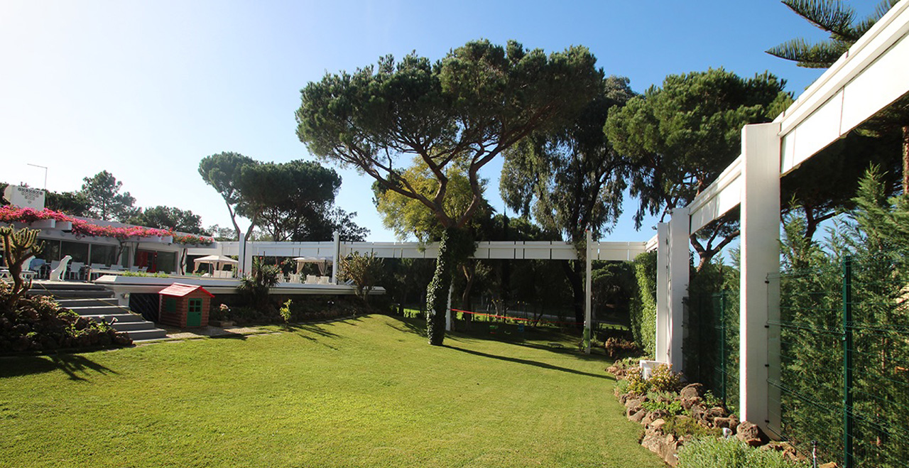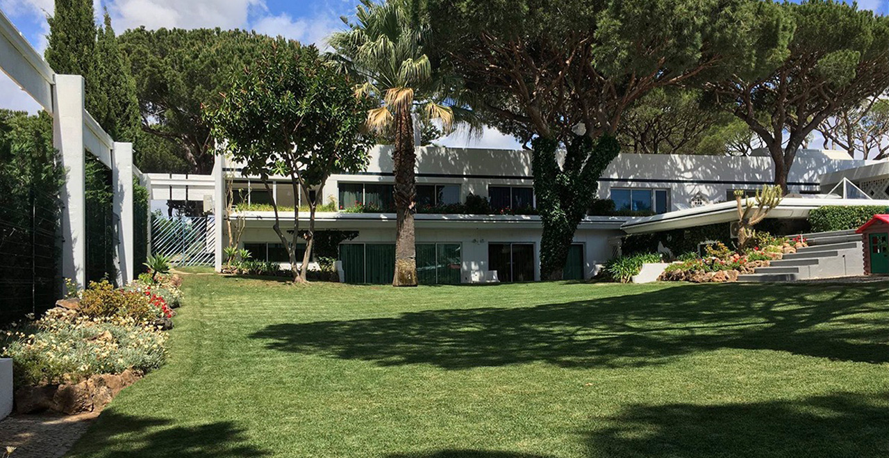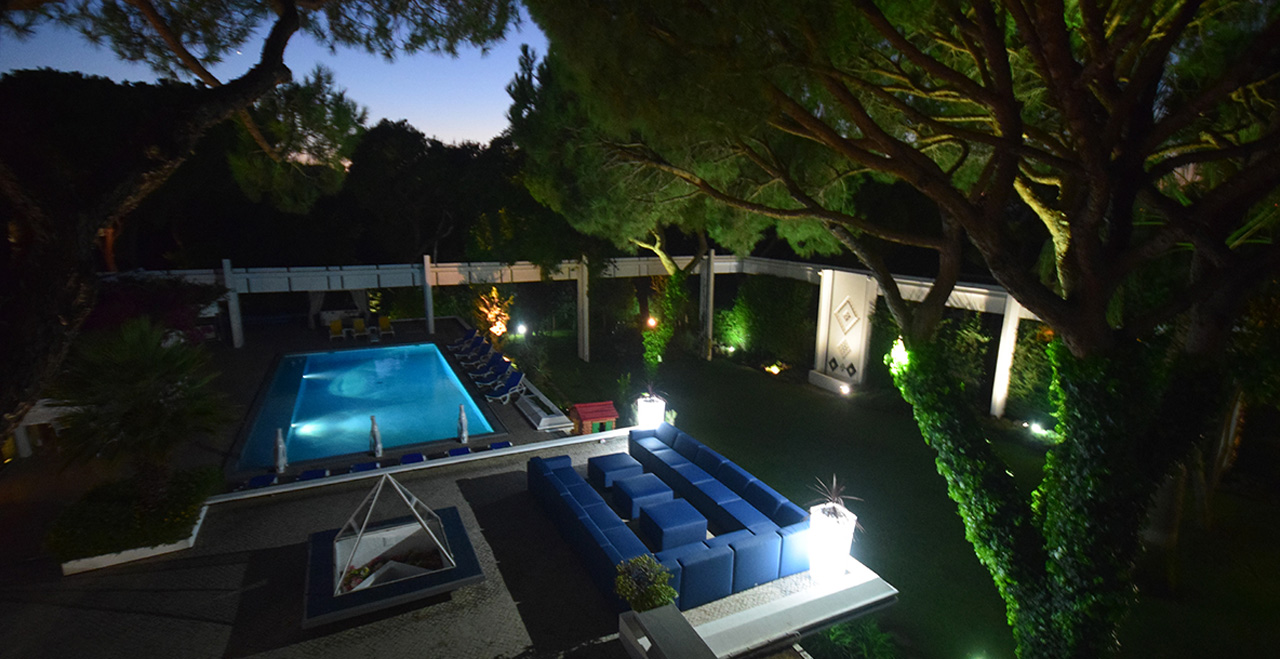 Villa Andreia is a very large one of a kind fully licensed 9 bedroom holiday rental villa located in most prestigious area of Vilamoura. The villa sleeps up to 22 adults + 3 infants. The villa is just a 25 minute drive from Faro airport and 3 minutes by car (courtesy 9 seater van included on the rental price) to the beach or 25-30 walk and the famous Vilamoura's Marina. Two of the five golf courses available in Vilamoura are also just a 10 minute walk from the Villa and Villa Andreia faces the fairway number 2 of Vilamoura's "Old Course". 4 minutes walking from the villa there is also a sports bar/restaurant where you can enjoy all kinds of land sports drinks and meals. A Michelin star restaurant and one of the most reputed SPA's in the Algarve are also just a short walk from the Villa. A small supermarket can be reached within a 15 minute walk and larger supermarkets can be reached within a 5 minute drive. Set in a 3200 square meter plot and with total inside area of 950 square meters. Of the 9 bedrooms, Villa Andreia has 3 rooms that offer several different configuration options (twin, double, triple and quad (4 single beds).
