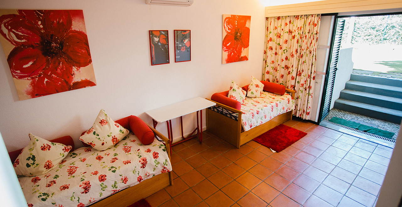 - 1 versatile room which can be used as a twin, a double + 2 single beds or as a quad (4 single beds garden room at the garden level)