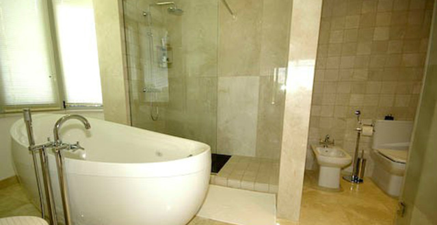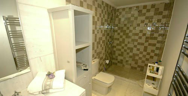 All 5 bedrooms are fully air-conditioned, en-suite bathrooms and there is Sky TV in 4 bedrooms.There are two bedrooms at the ground floor level, two at first floor and the fifth is in the lower ground.On the ground floor are two bedrooms: a guest room opposite the living room has doors to the side of the house, twin beds, walk in shower and its own small dressing area.