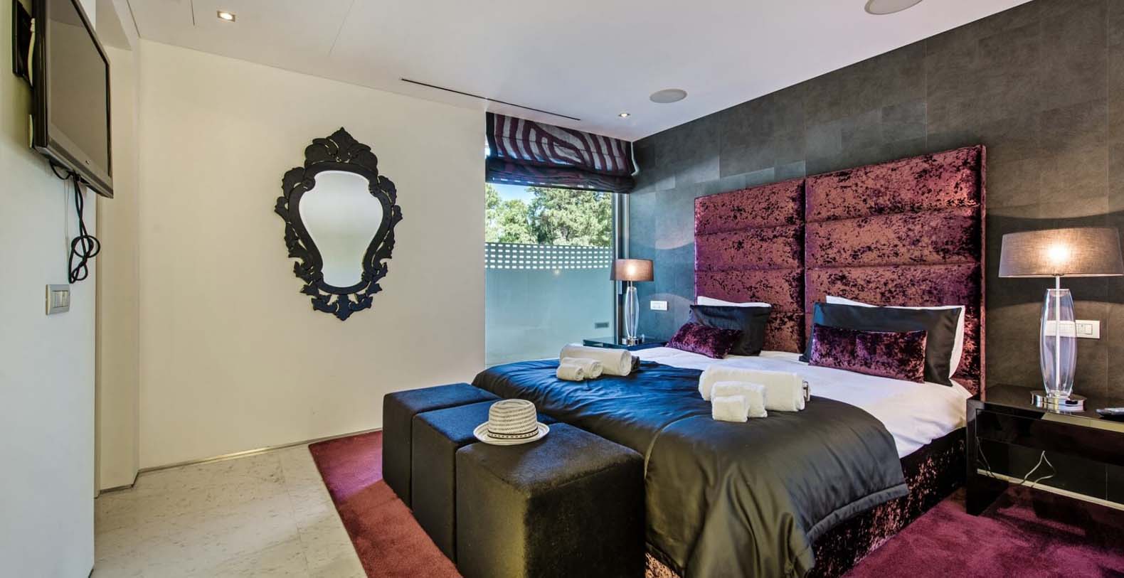 2nd Floor: Master bedroom and bedroom 4: Master bedroom: is a double room with a large dressing room, flat screen TV, ultra contemporary en suite bathroom with bath and separate shower unit and doors to the excellent main terrace overlooking the pool, furnished with comfy seating. Bedroom 4: Is a double room with a wall mounted flat screen TV, separate dressing area, en suite shower room and doors to the main terrace. Stairs lead to the 3rd floor of the property, the roof terrace and Jacuzzi.