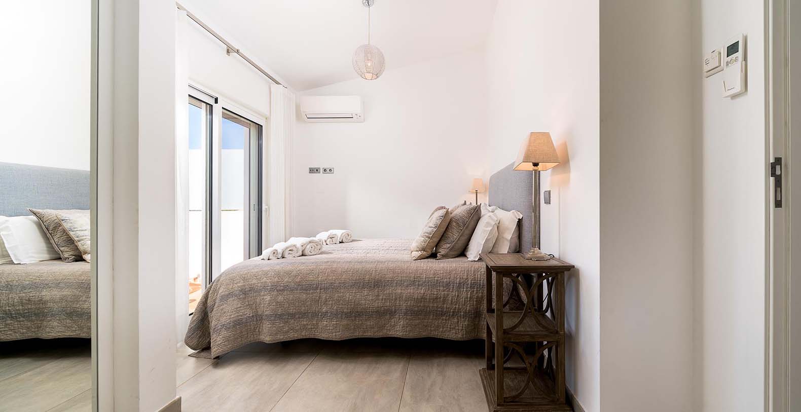 The ground floor open plan has a lounge area with TV, dining area, kitchen with a breakfast bar that leads to the terrace and pool. The kitchen is fully equipped with a dishwasher, refrigerator, freezer, stove, oven and microwave. Additionally, there is a cloak room and 2 twin bedrooms with 1 shared bathroom. On the 1st floor you have the master bedroom with TV, ensuite bath, leading to the terrace and another ensuite guest bedroom with a shower room. There is a private pool with terrace, BBQ, garden furniture and electric awning. There is air conditioning throughout, digital TV with access to UK channels including BBC channels as well as Wi-Fi.