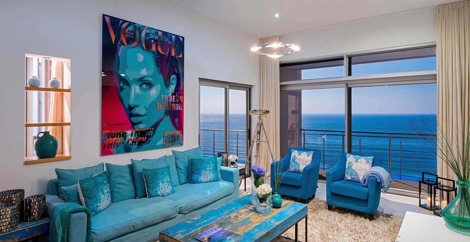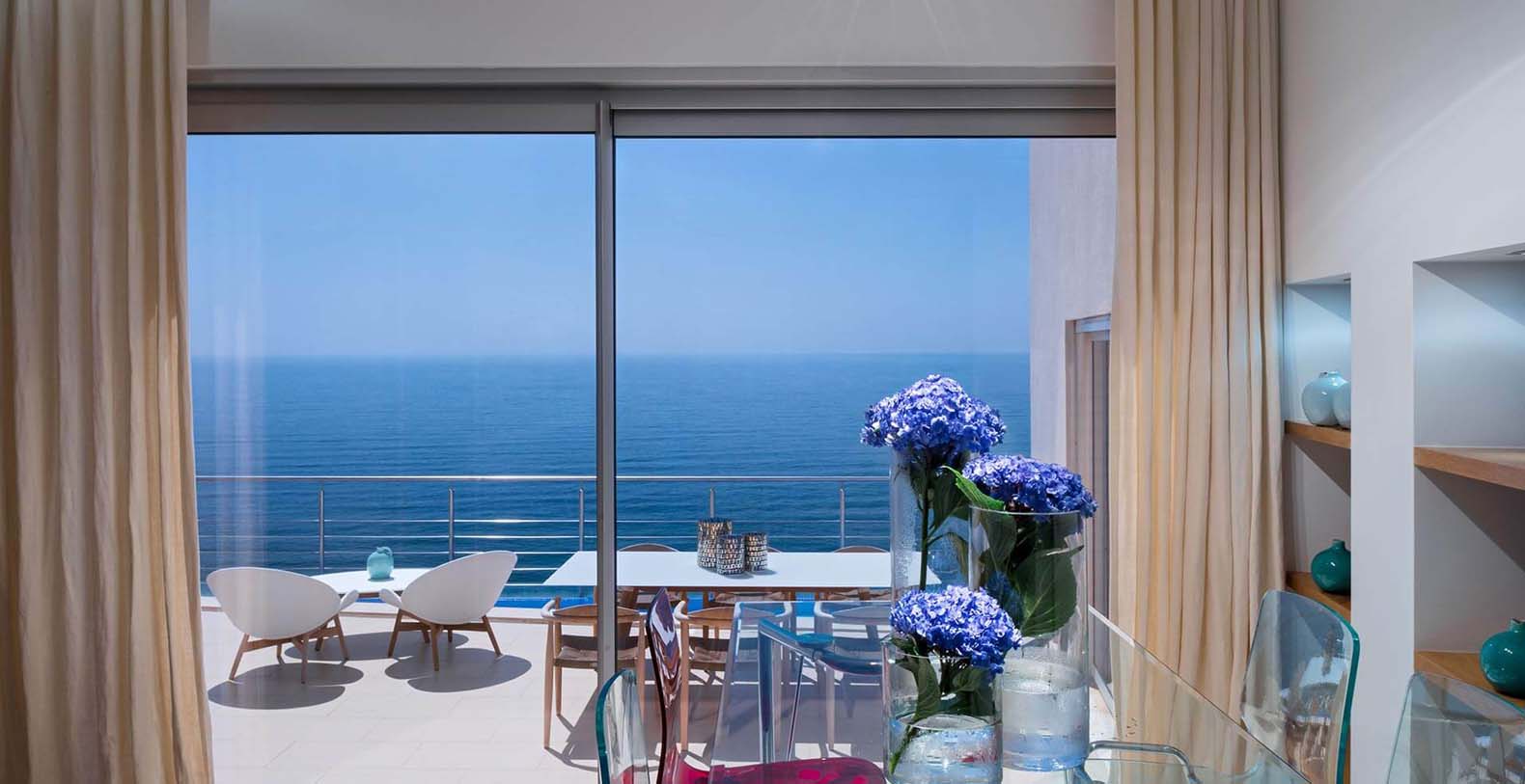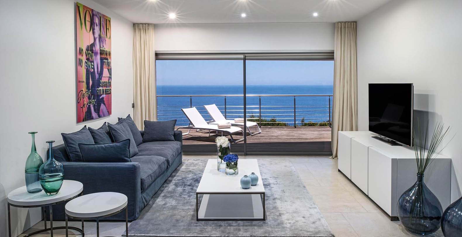 With the teal blue of the Atlantic beckoning from the villa’s outdoor dining terrace, the poolside patio and almost every window, Mar Azul capitalises on its seaside setting. Stretching along the outer cliff edge of the property, the lengthy pool also makes the most of its coastal location with unobstructed sea views.