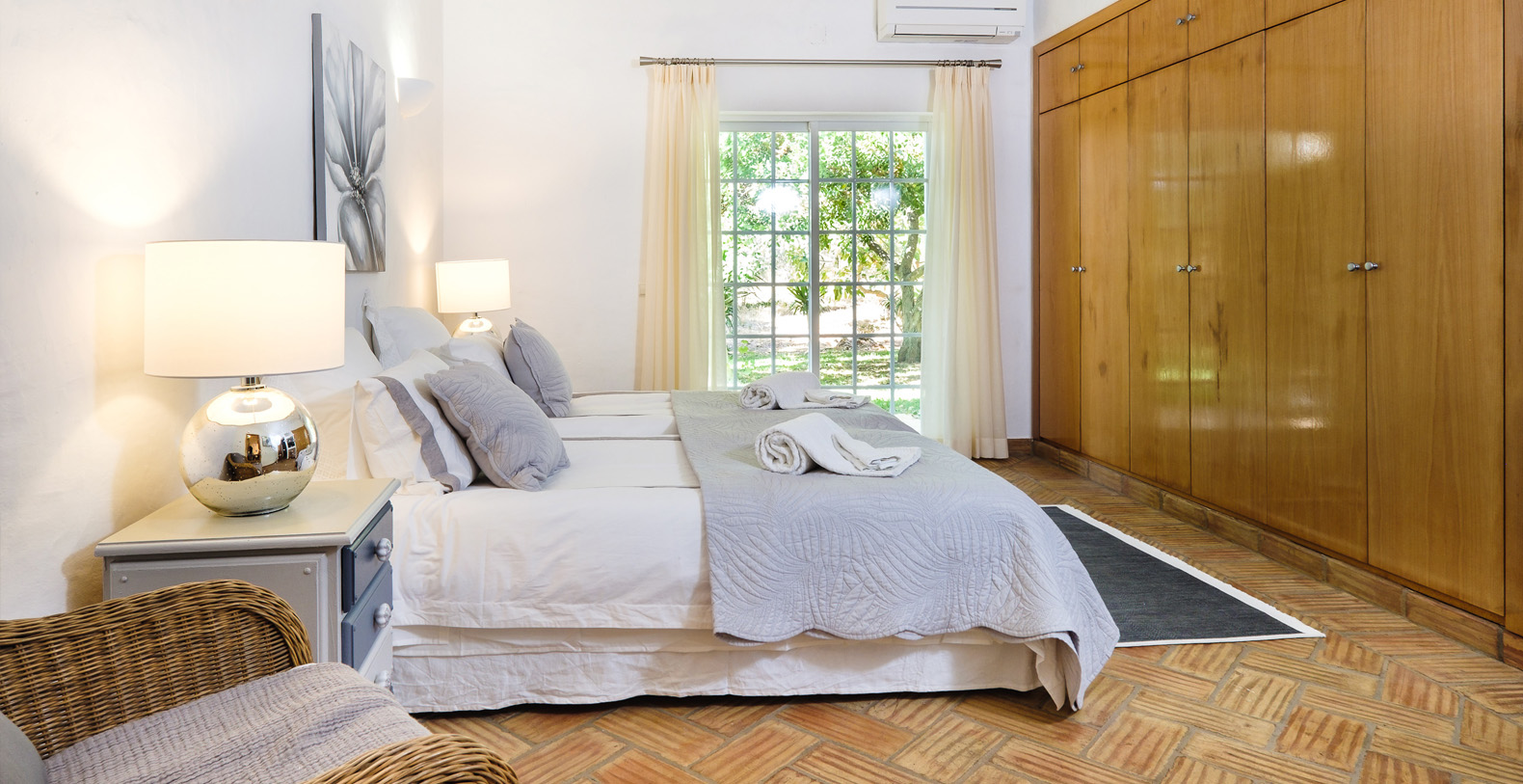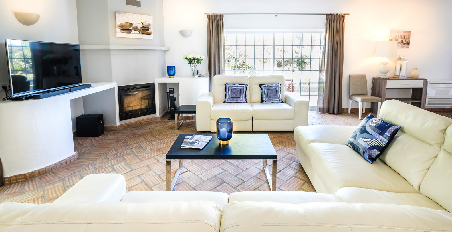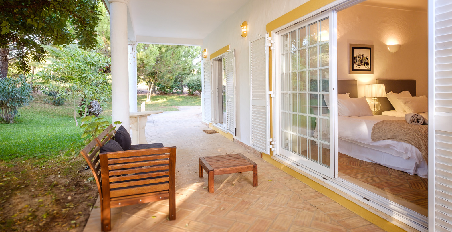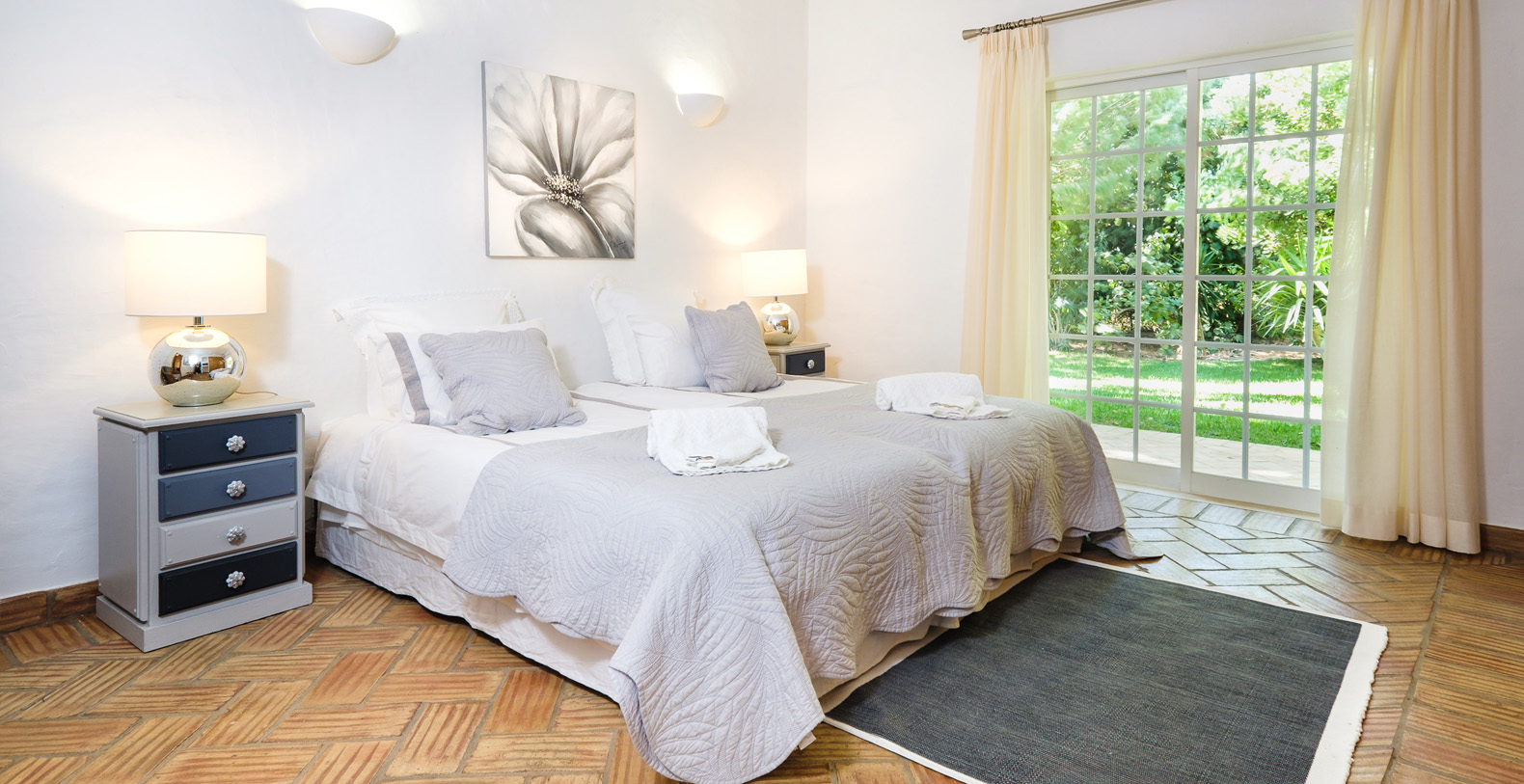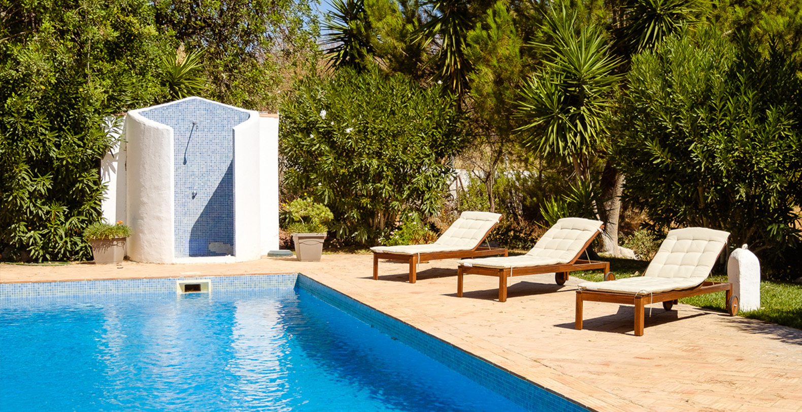 This stunning 3+1 bedroom villa offers the best of both worlds; a retreat environment in a spectacular garden oasis, yet only a 10 minute drive from the vast variety of restaurants, golf courses and entertainment of Vilamoura and Pine Cliffs 5 Star Resort. Only a 25 minute drive from the airport, Vale Do Lobo and Quinta Do Lago, Vila Moura is utterly idyllic and boasts a huge open plan living room, with a spacious dining area. The kitchen is newly installed and well equipped, and all of the bedrooms are also spacious and each have their own bathrooms. The villa is contemporary in style but with a beautiful authentic Portuguese flair, and is single storey, making it safe for children or older guests. The house benefits from an enormous terrace which winds its way around the house, offering a number of places to enjoy a glass of wine al fresco, or read a book in peace and quiet. The swimming pool is large with a terracotta terrace surround with plenty of space for sunbathing.
