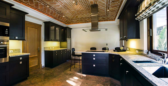 The ground floor consists of 3 bedrooms with wooden built in wardrobes all accessing the external courtyard - 2 Bedrooms in the exterior with separate entrance and steps down to the pool terrace and garden