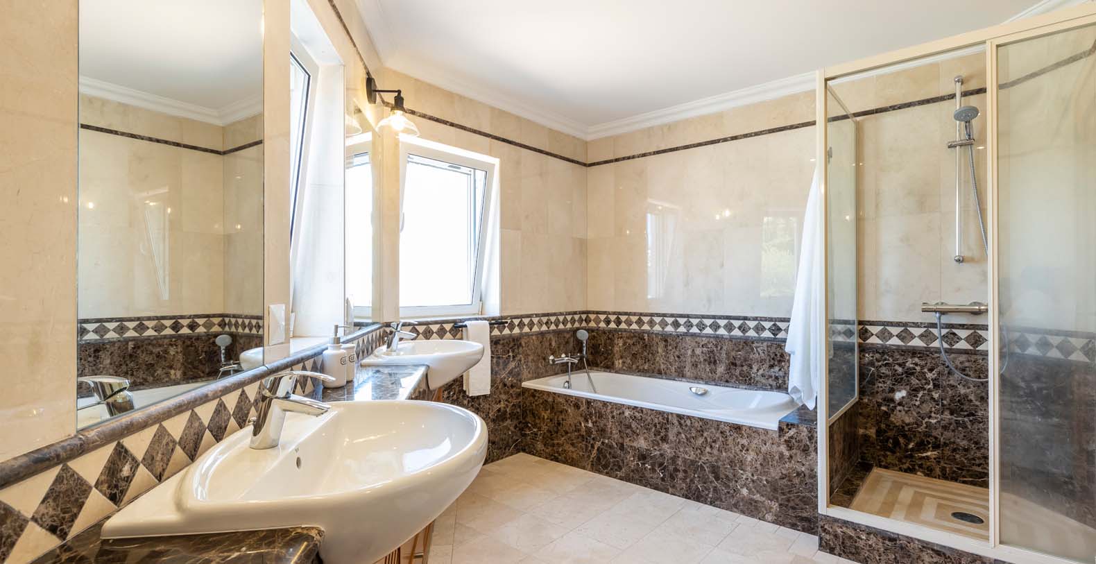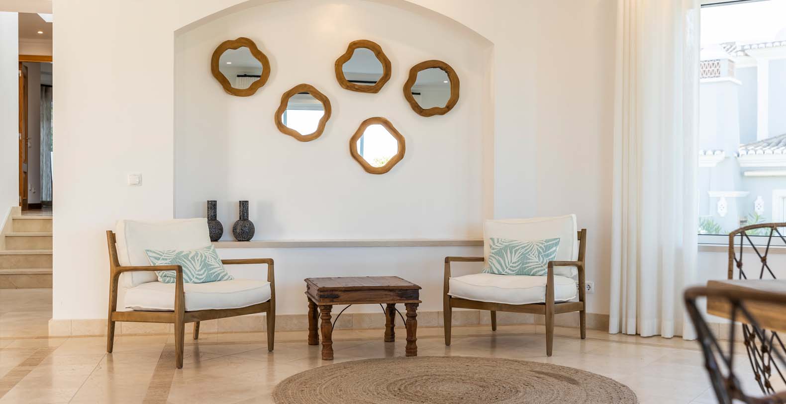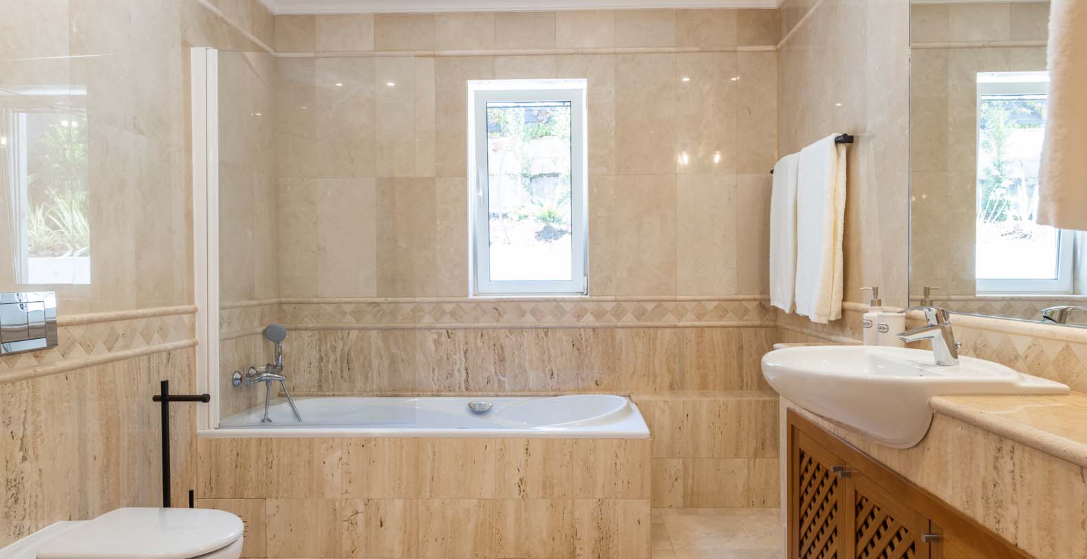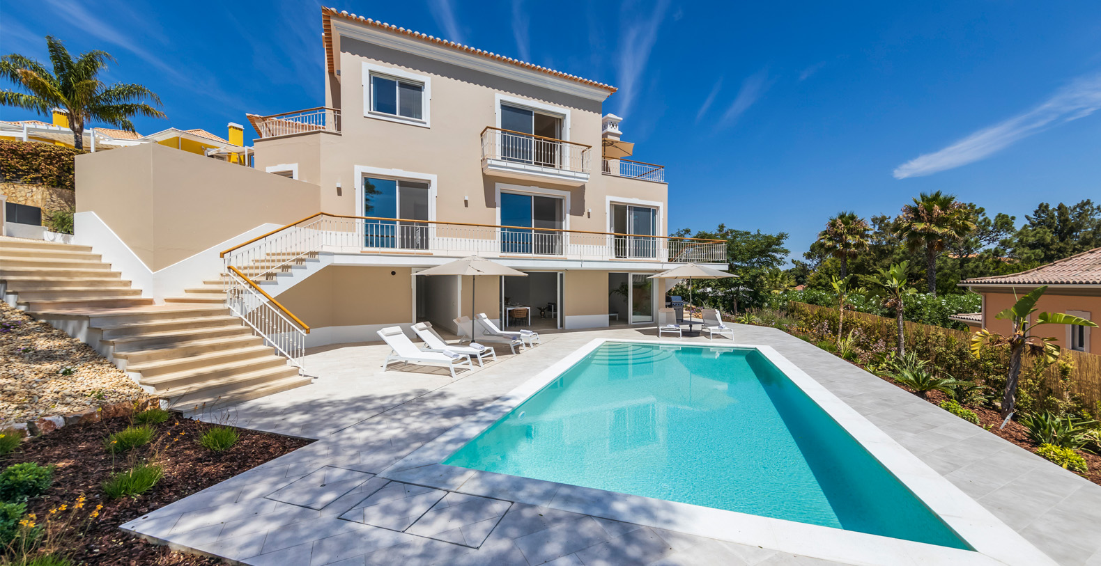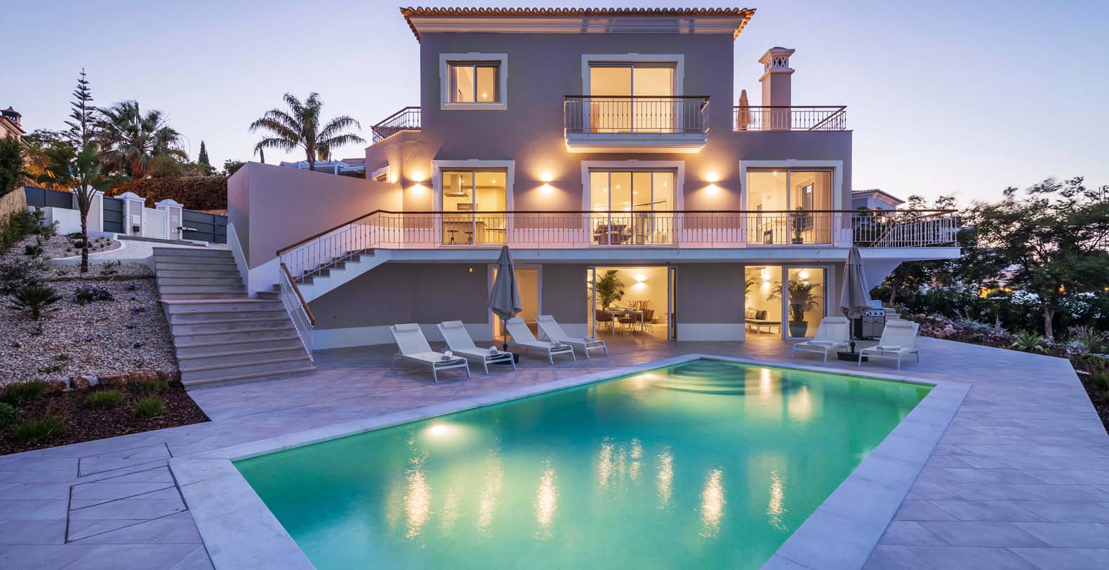 Laid out over three floors, Villa Rambutan boasts an amazing outdoor sunny pool with stunning sun loungers for those who want to soak up some of that lovely Algarvian sun. You can access the pool via a lovely indoor dining/lounge and kitchen area designed especially for your total relaxation whilst enjoying the pool and outdoor garden. On the ground floor you have two ensuite bedrooms, the main kitchen, living room/dining room with access to a lovely terrace with elevated views of the Quinta do Lago resort. On the first floor you have the master bedroom that features a large ensuite bathroom and stunning views over Quinta, also on this floor you have another ensuite bedroom. This Villa is beautifully decorated throughout and offers everything you would need for your perfect family holiday.