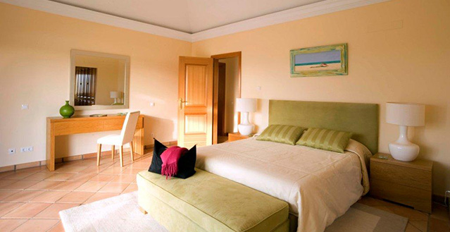 As a “home away from home” the villa is fully equipped and luxuriously furnished. The accommodation sleeps 8, and comprises three plus one bedrooms, all with ensuite facilities. Three of the bedrooms have direct access to a private west facing terrace. There is a large open plan living space with huge windows, a fireplace, and a fully equipped kitchen. Outside in the private garden there is a swimming pool that has a child safety fence.