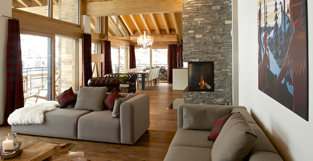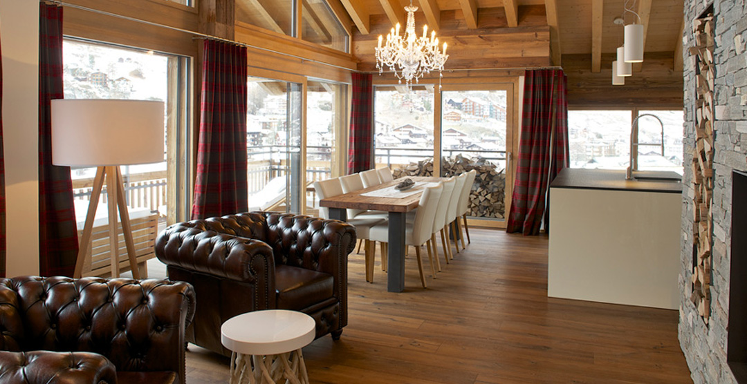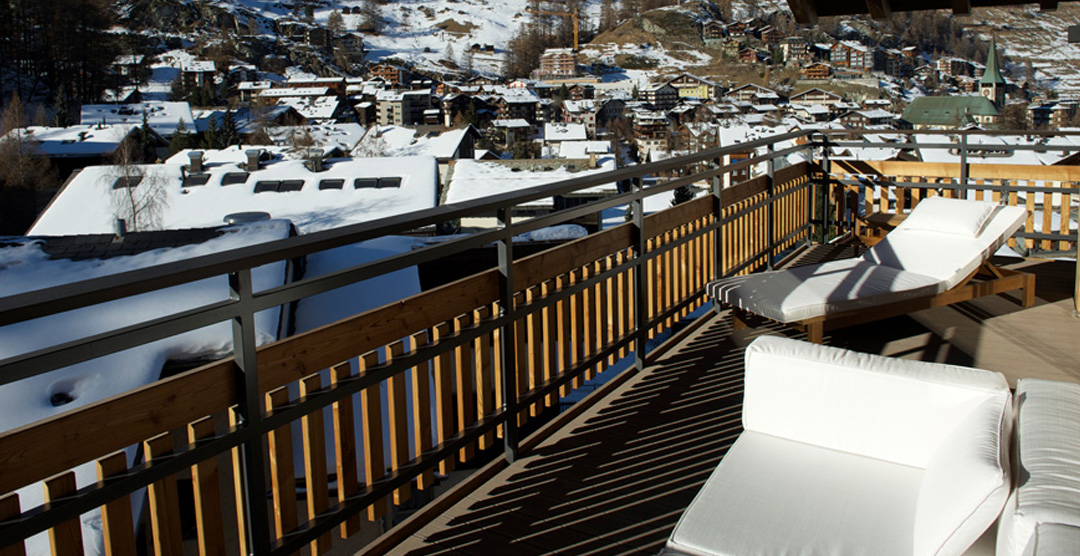 Zermatt’s Chalet Aria provides accommodation for 8 guests, this exquisite 240m2 penthouse apartment is centrally located and has stunning views of the Matterhorn and over the village of Zermatt. It combines Oak and natural stone features with contemporary design.