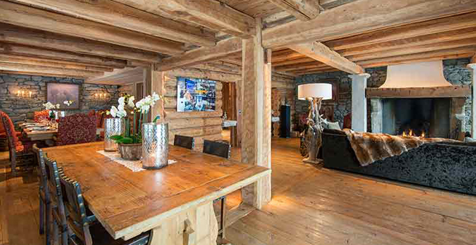 Chalet Clarité sleeps up to 11 guests in 6 en-suite bedrooms. The master suite has its own fireplace with en-suite bath and shower room. 5 other en-suite bedrooms are spread over 3 levels. The main living area features a massive stone fireplace which dates back to the 1700’s. It really is the centrepiece of this room. There are huge panoramic windows to take full advantage of the breathtaking views. Great care has been taken to create a warm and cosy ambiance.