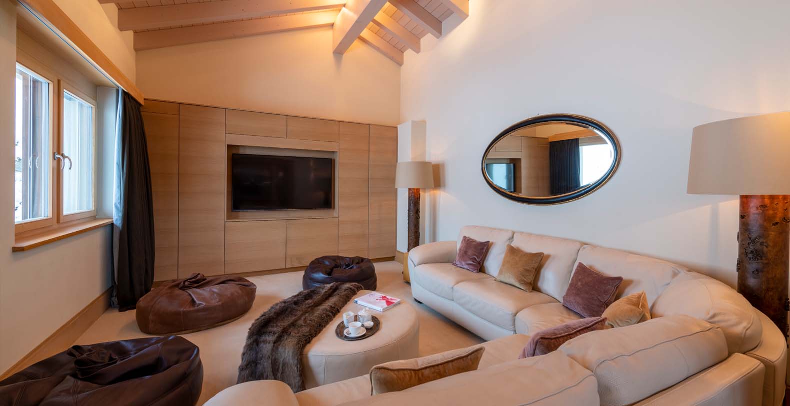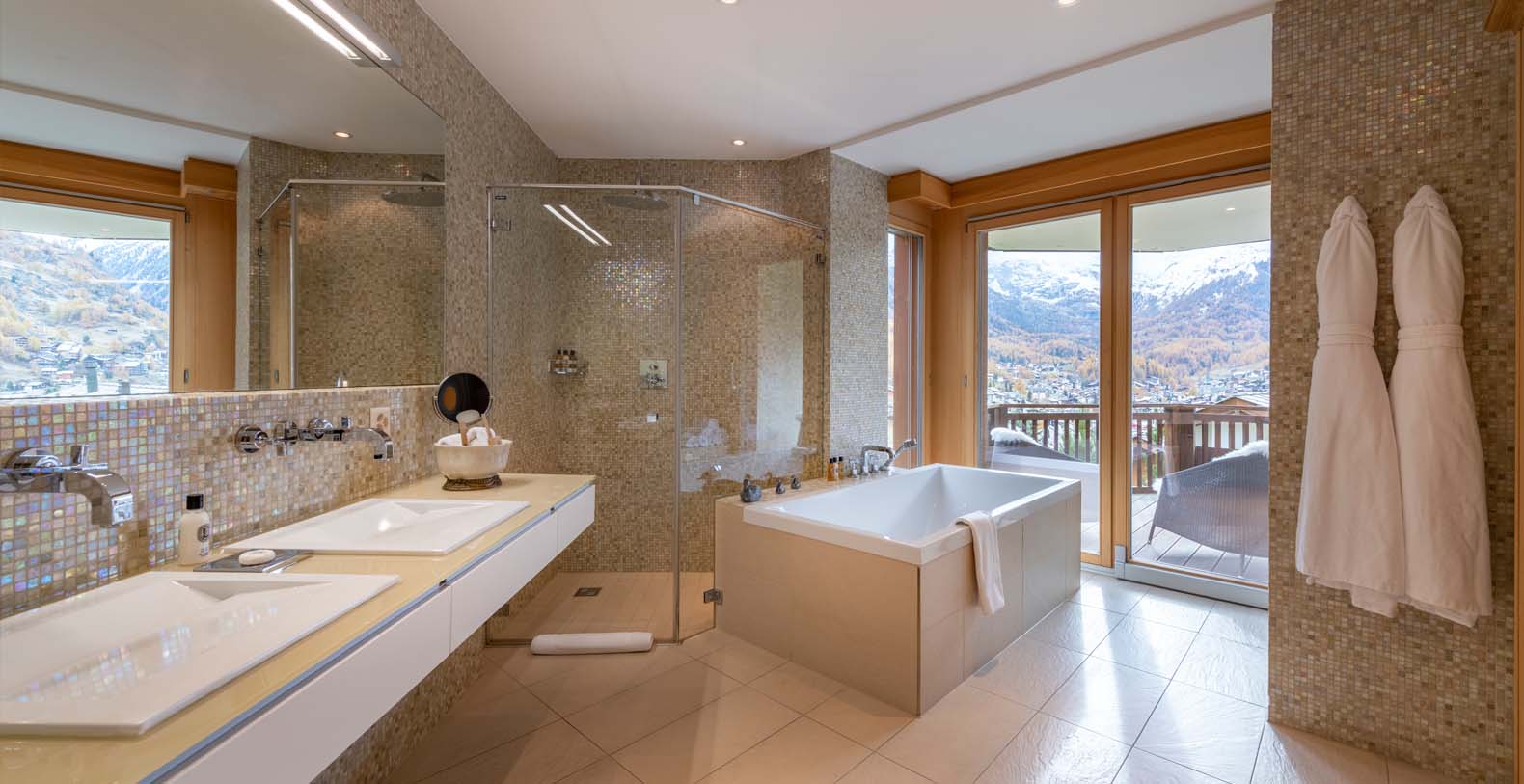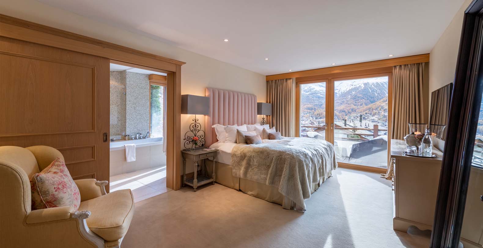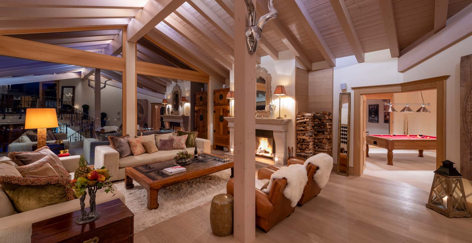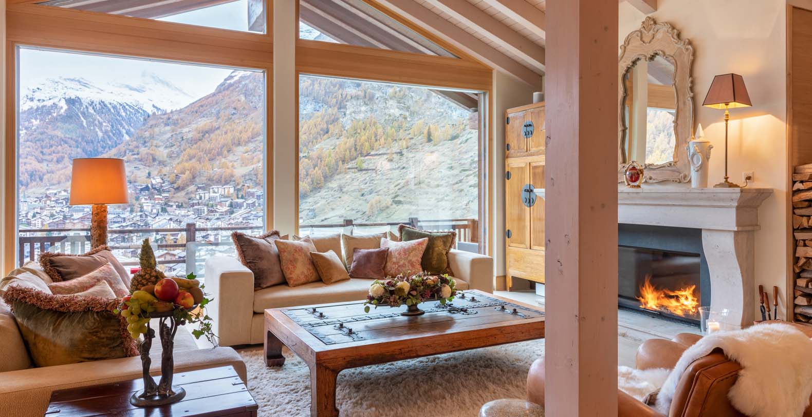This chic and sumptuous Chalet is built to the highest standard, featuring floor to ceiling windows on all three levels, and a dramatic vaulted interior. South facing balconies capture the breathtaking scenic views of the Matterhorn and surrounding mountains.