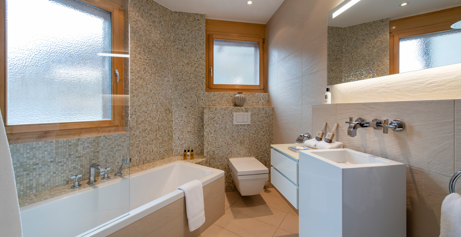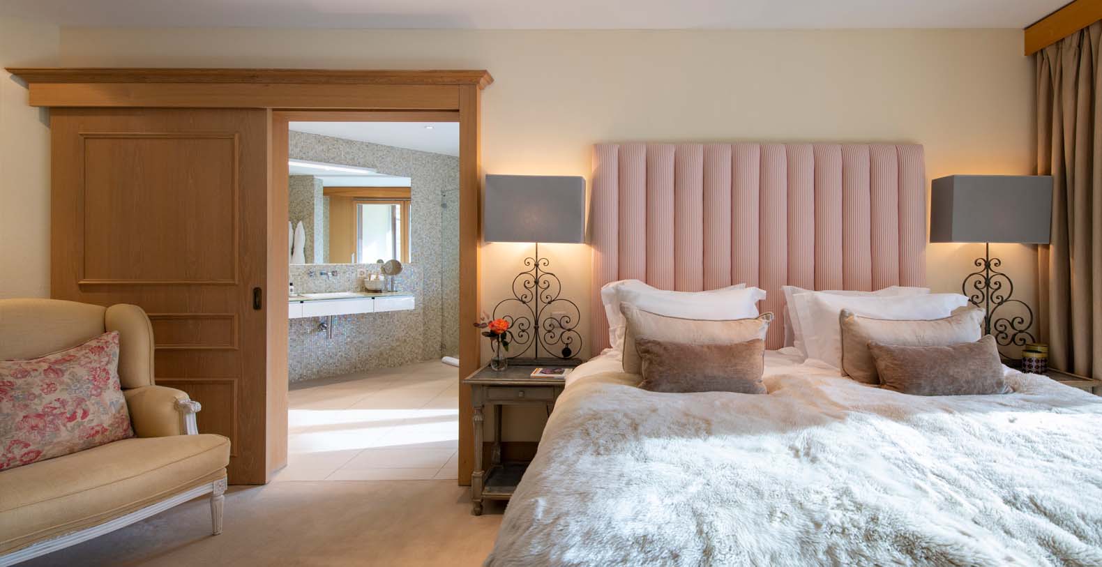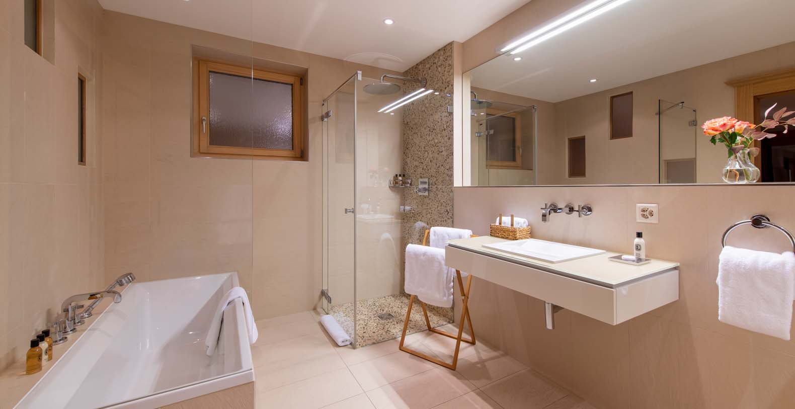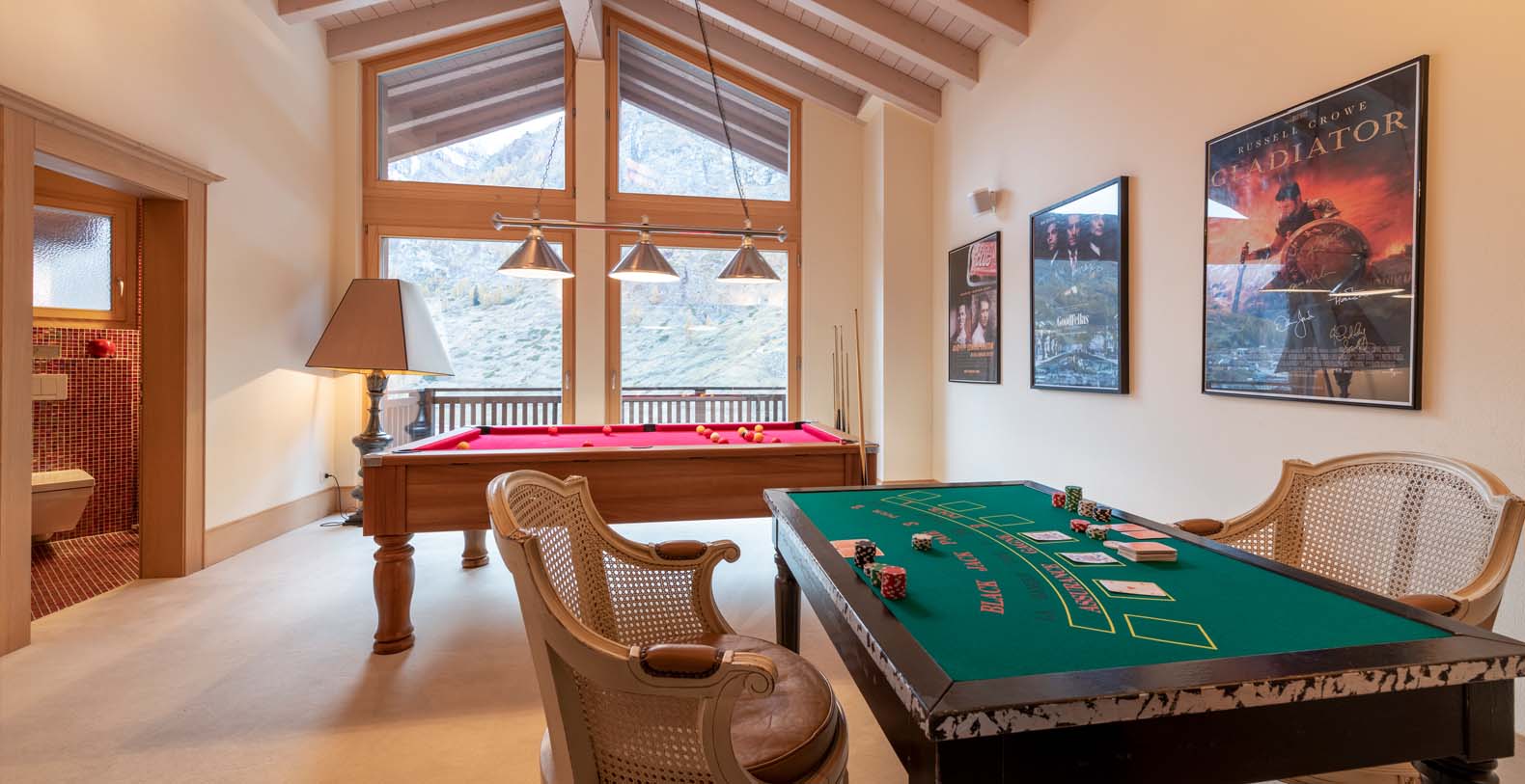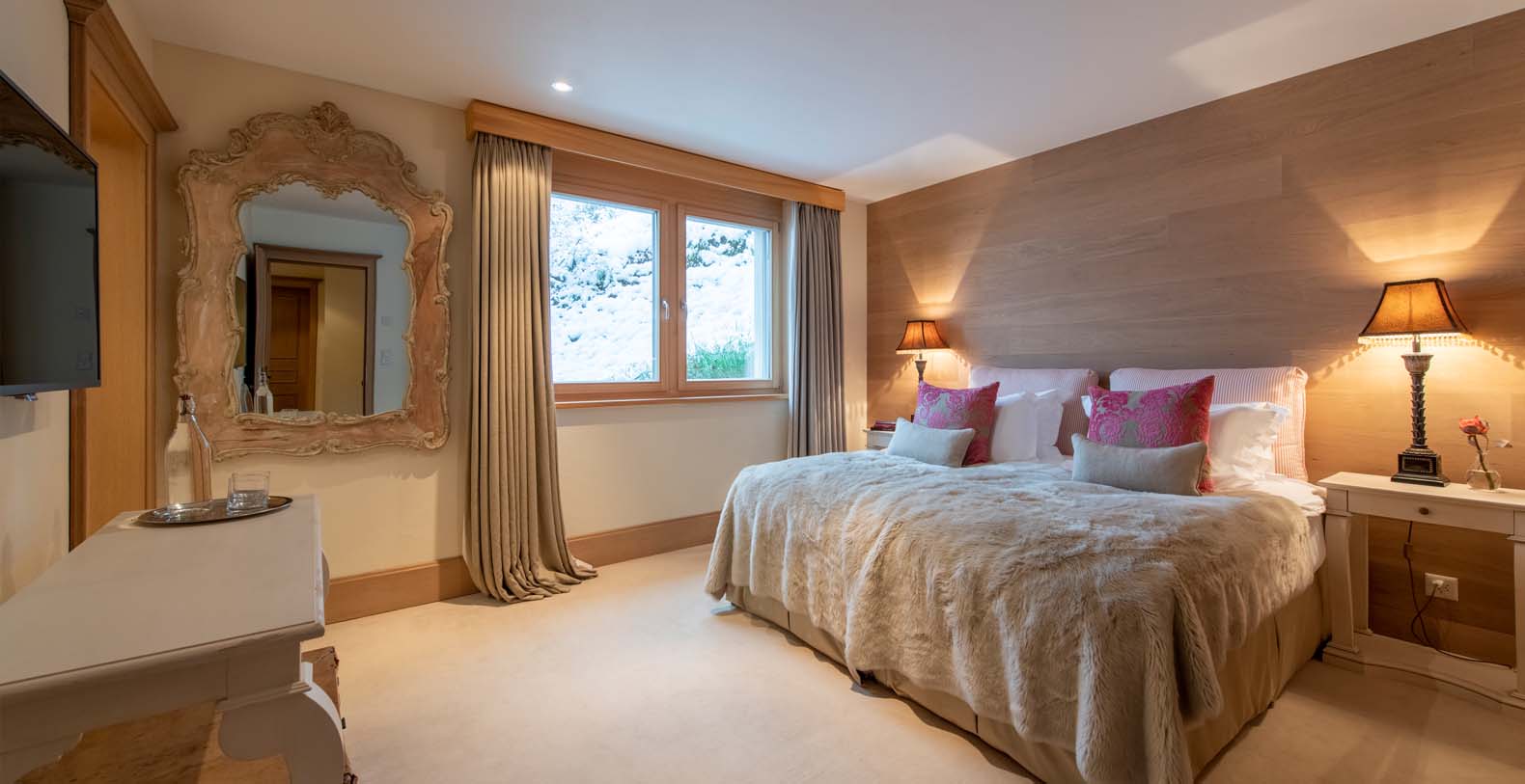 This chic and sumptuous Chalet is built to the highest standard, featuring floor to ceiling windows on all three levels, and a dramatic vaulted interior. South facing balconies capture the breathtaking scenic views of the Matterhorn and surrounding mountains.