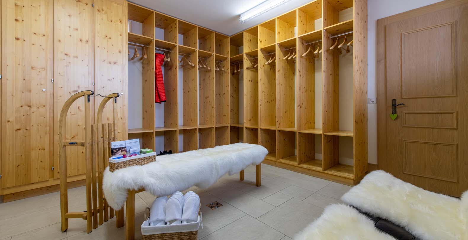 Ski room with heated boot racks