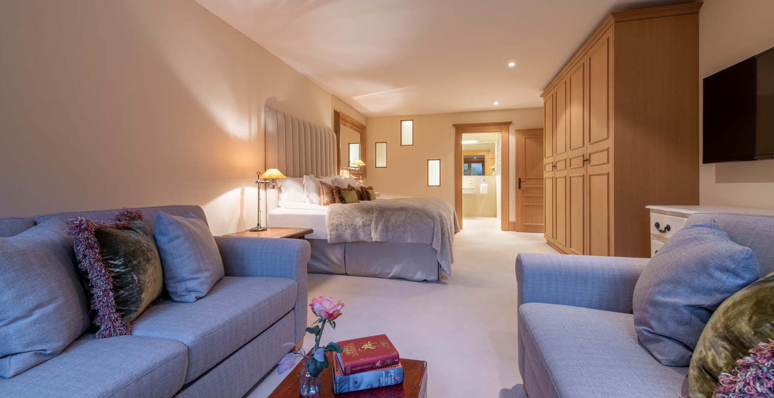 Twin or Superking size bed. En-suite bathroom with bath and separate shower. Two sofa beds. This bedroom can sleep 4 pax. Plasma TV with Sky and DVD Player.