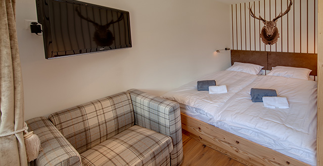 Chalet High 7 Penthouse is a beautiful penthouse located on the second and third floor of the chalet which consists of only three other apartments, which are located on the ground, first and second floors. There is a spacious entrance on the second floor and three bedrooms, two are double/twin en suite bedrooms, one of which can be a triple room and the other bedroom is a en suite double. Two of the bedrooms have free-standing baths as well as en suite shower rooms with WC’s.
