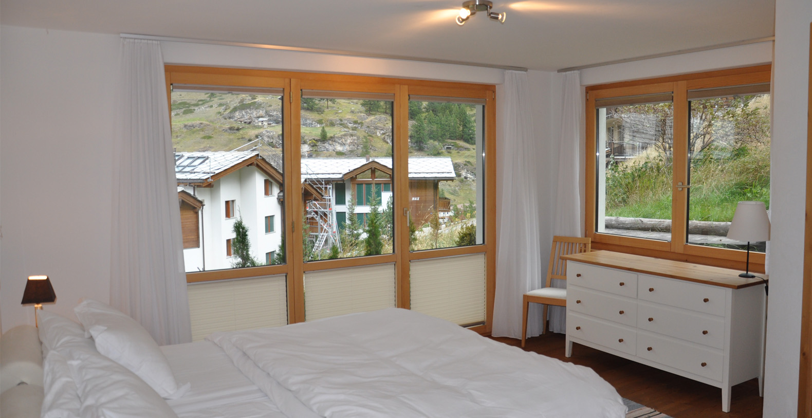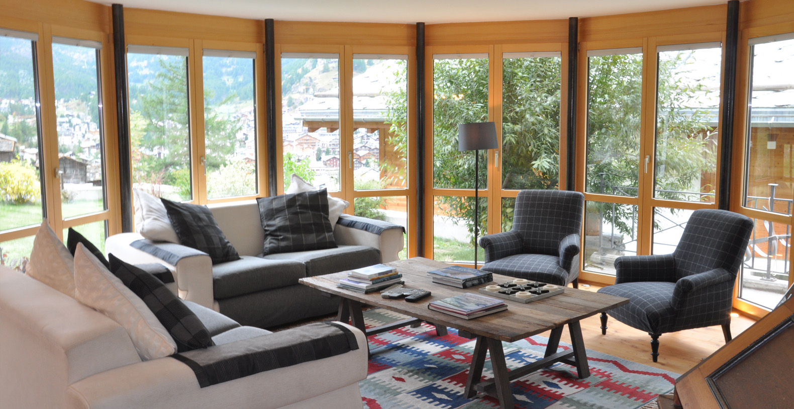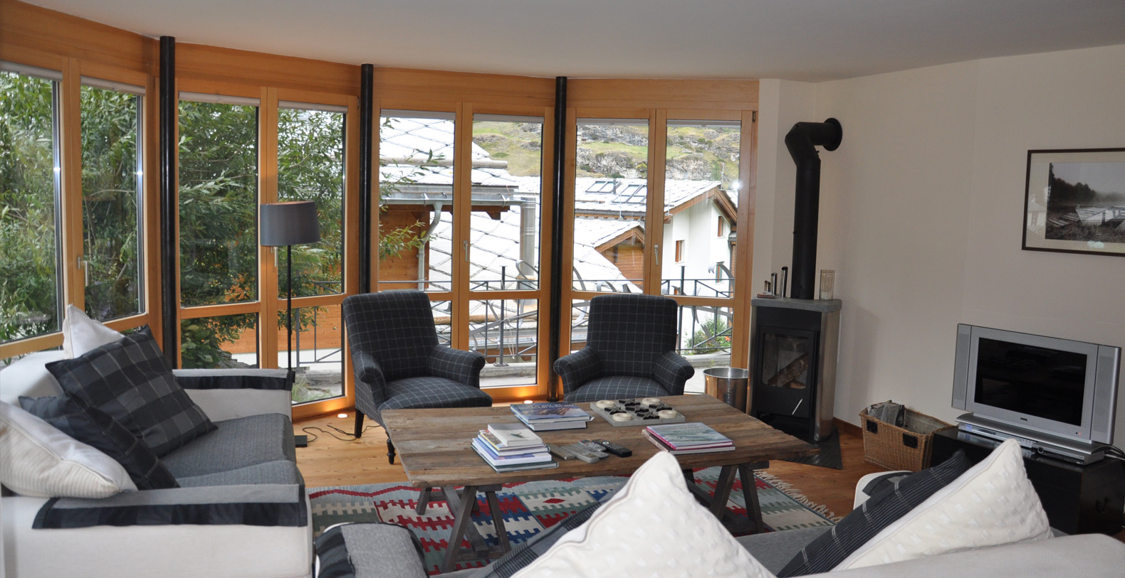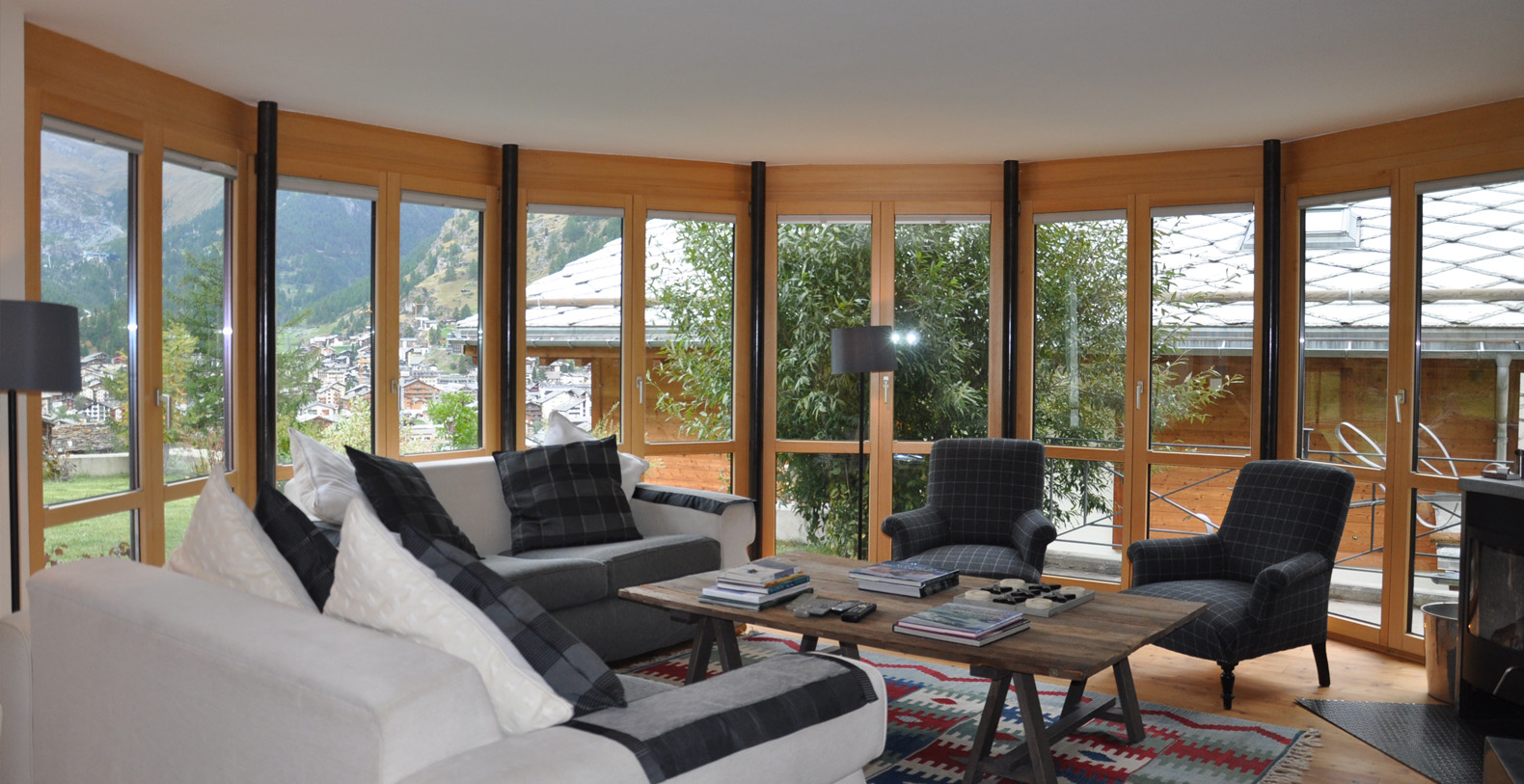 The lounge has a stunning bay window with fantastic views of the Matterhorn and looks down over the village.