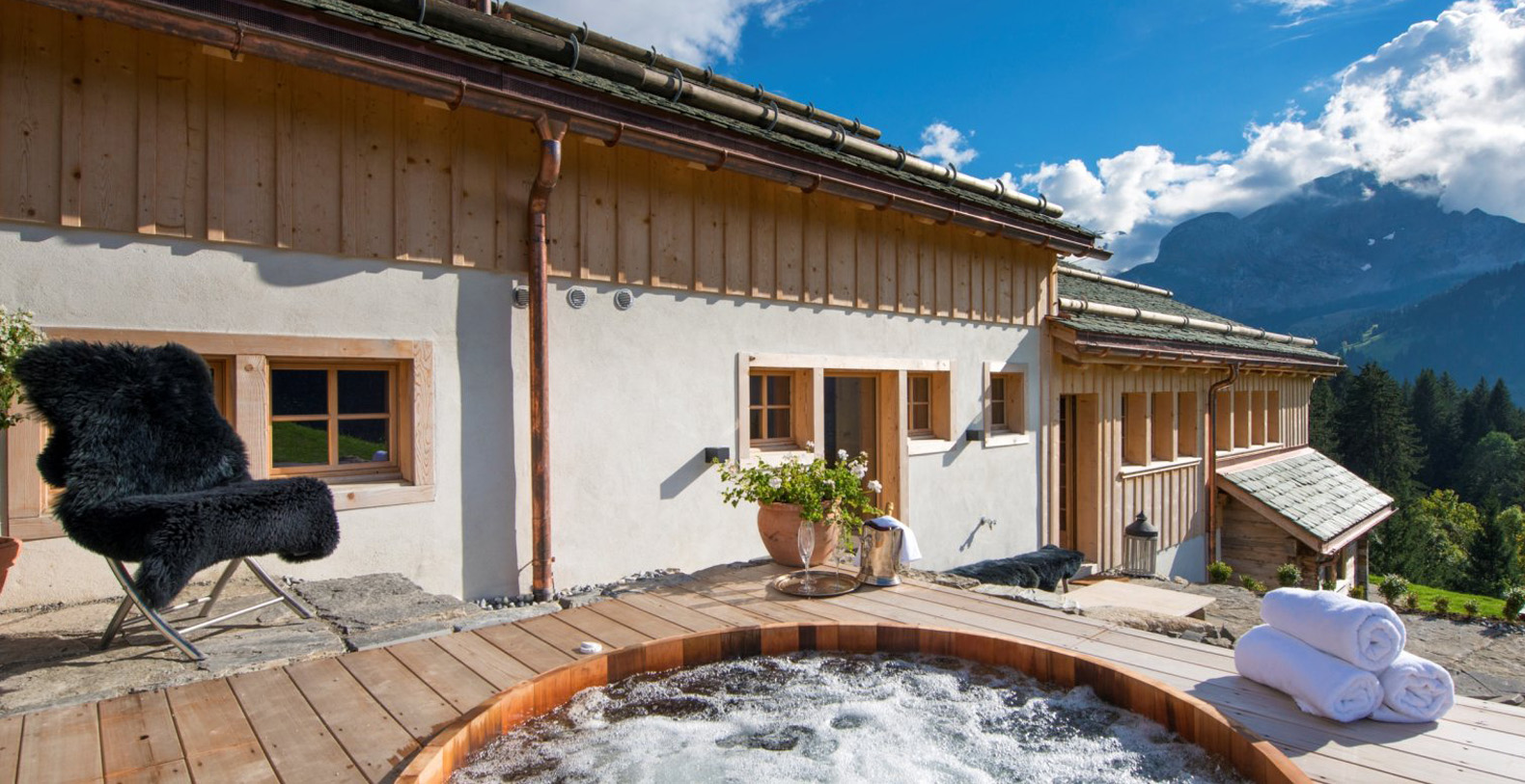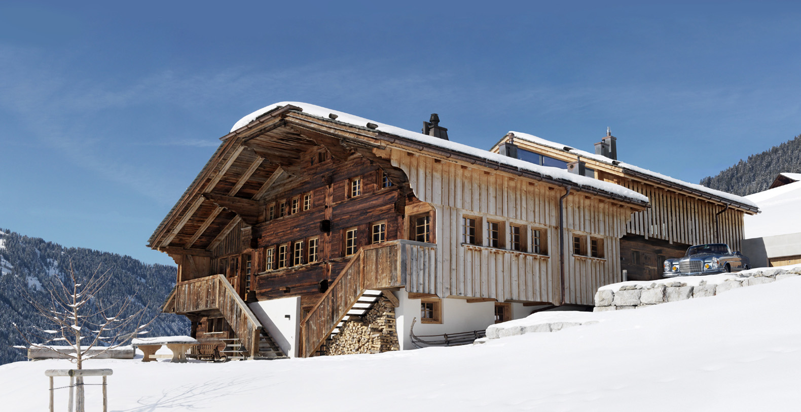 An original farm house dating from 1867 the property has been transformed into a truly impressive alpine home. Many of the original features have been retained and the chalet makes use of the original wooden beams and panelling of the building. Sumptuous fabrics, contemporary furnishings, sculptures and art have been combined with aged woods, natural stones and traditional features to create a very comfortable and chic property.