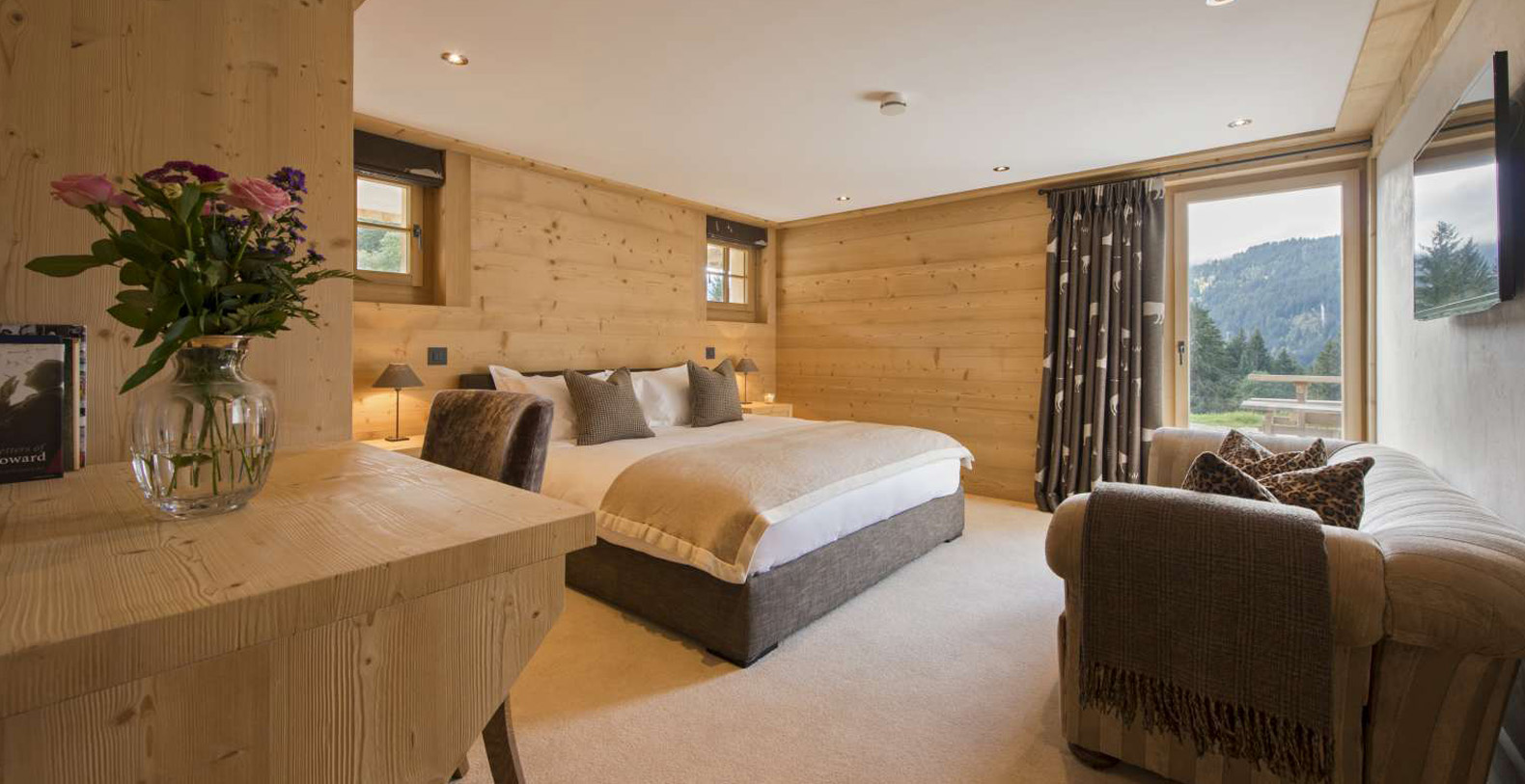 Sleeping 14 people in 7 en-suite bedrooms the chalet is set out over three floors and boasts an extensive and sophisticated living area and separate dining room seating up to 18 guests, perfect for entertaining. The chalet has a further open plan breakfast room and 2nd living area as well as a cinema room, small gym, sauna and outdoor hot tub.