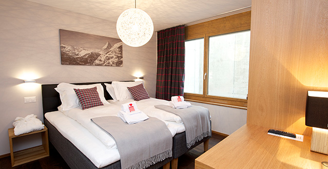 The centre of the village is 2 minutes walk and the Klein Matterhorn ski lift is 5-7 minutes walk or 2 minutes by bus