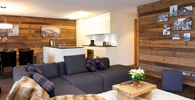 Zermatt’s Chalet Petit provides accommodation for 6 guests. This exquisite 130m2 first floor apartment is centrally located and has fantastic views of the Matterhorn and surrounding village of Zermatt. It combines oak and natural stone features with contemporary design.