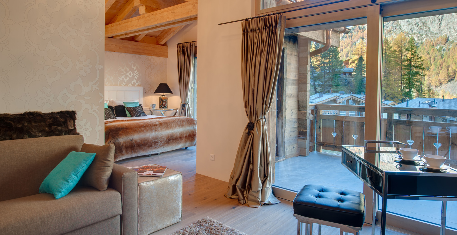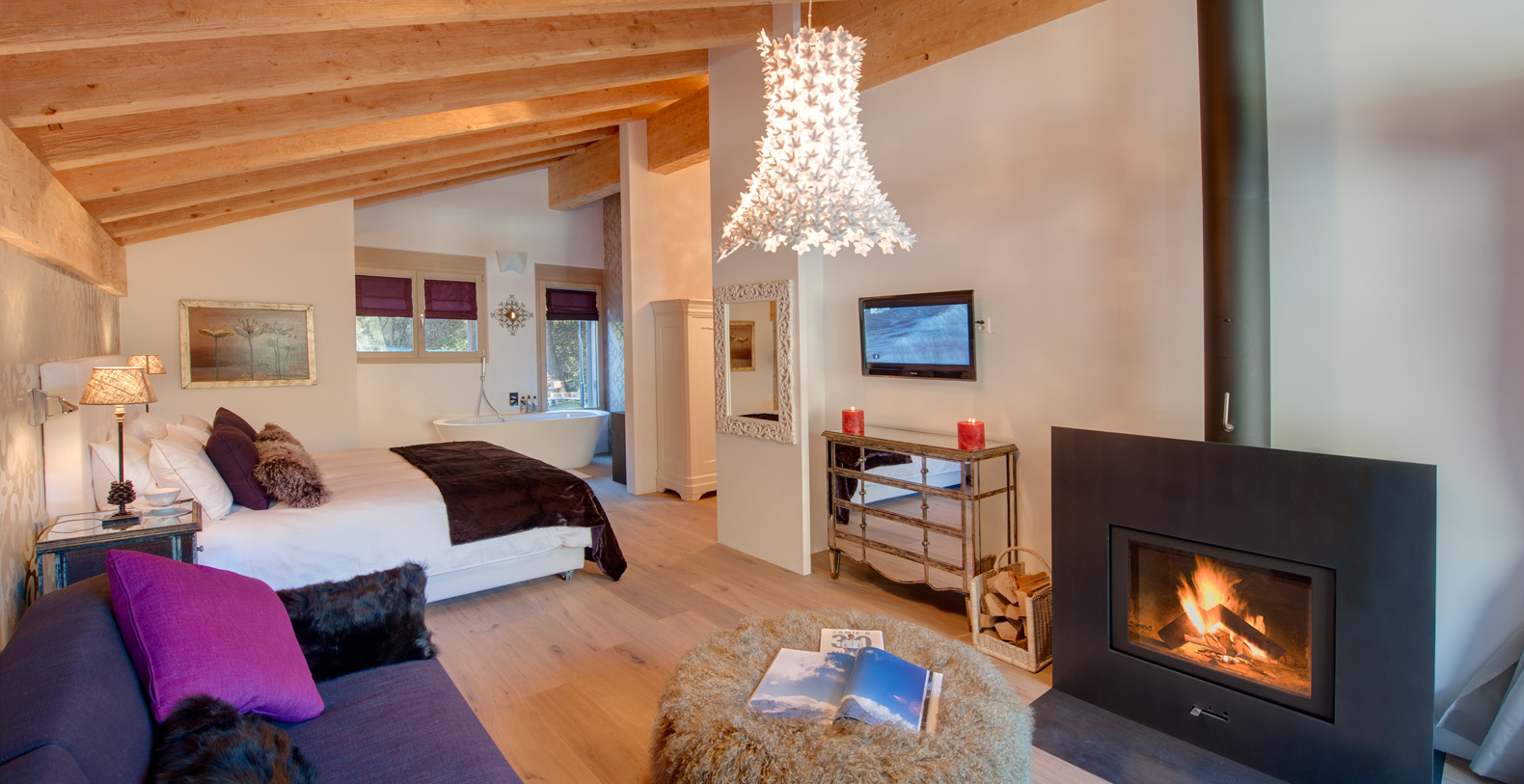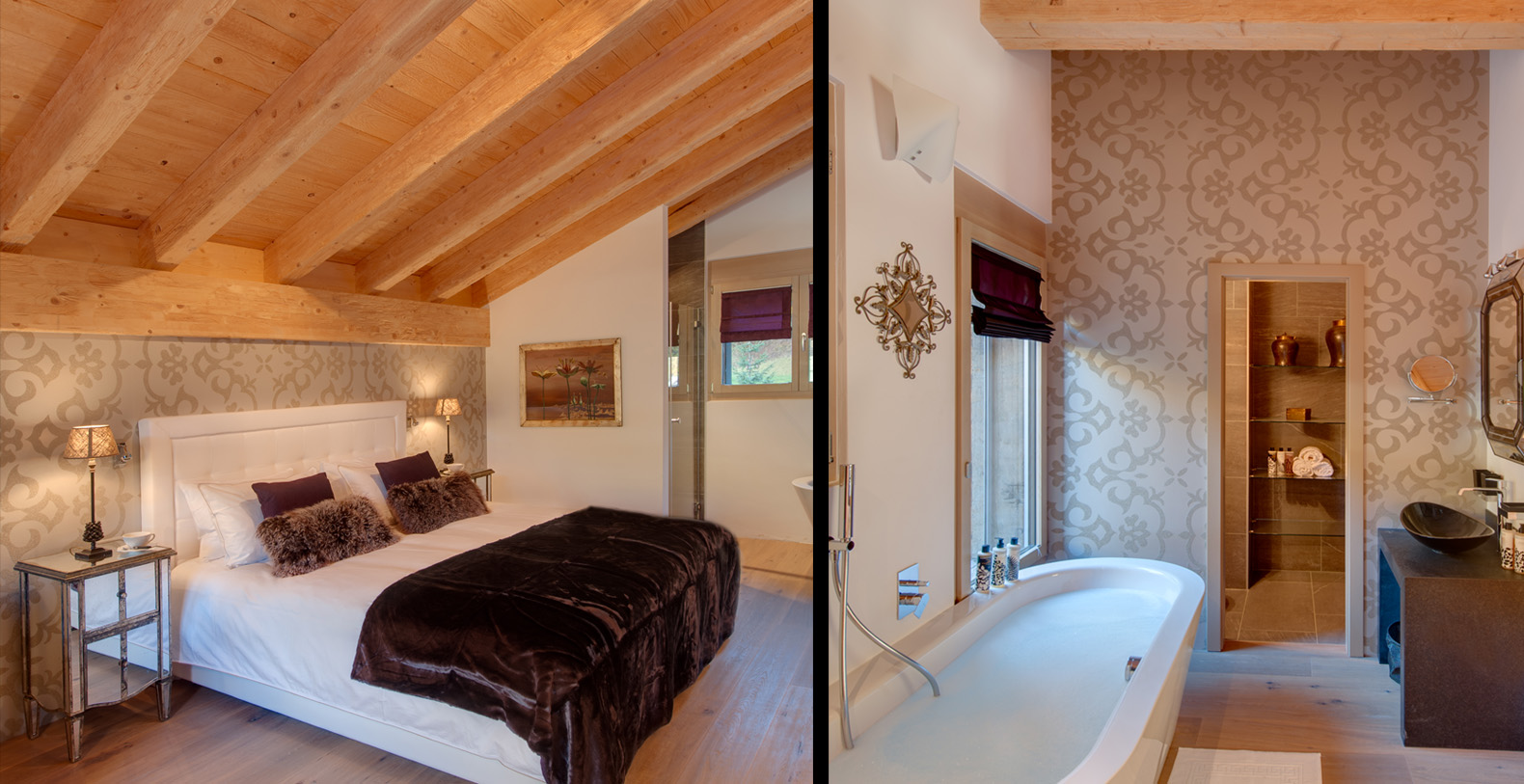 The second floor of Chalet White Pearl has two suites with balconies and fantastic Matterhorn views and both have an open fire. Each suite has a large double bedroom with a free-standing bath, en suite bathroom with shower/WC. The master suite has a separate lounge/dressing room with a fireplace and the second suite has an open-plan lounge and dressing room.