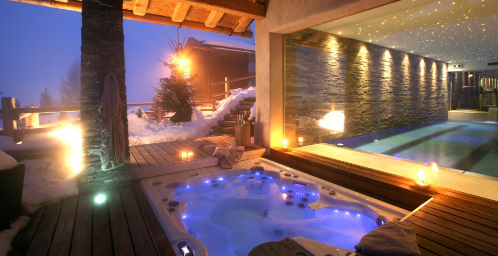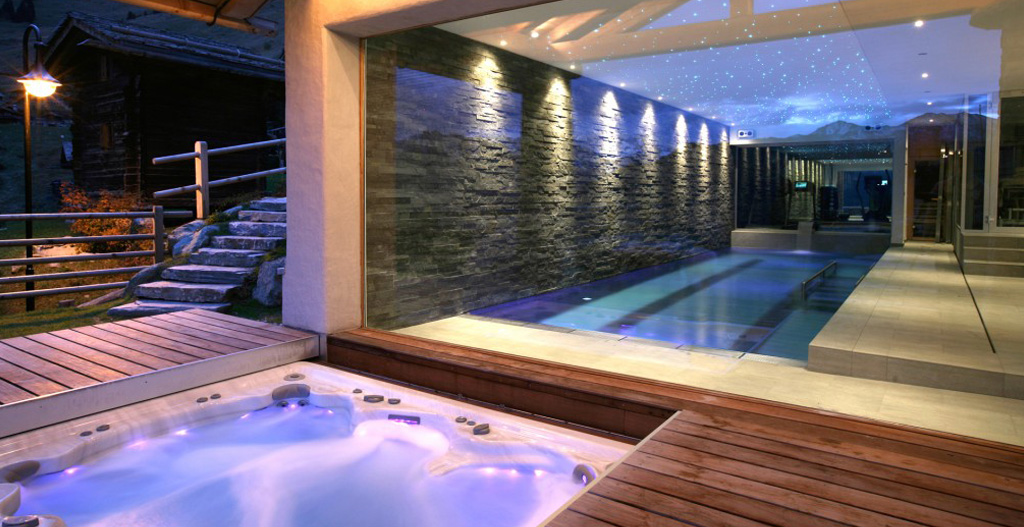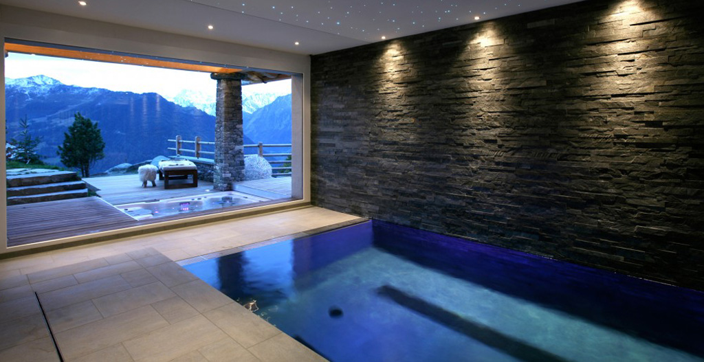 A short walk from the Savoleyres lift station and tucked away down a private road, Verbier Luxury Chalet offers the convenience of a prime Verbier location yet the seclusion and privacy that you’d expect from an exclusive residence. Inside the property is resolutely modern yet still retains an authentic chalet flavour through the use of locally sourced natural materials, such as massive timbers and mountain stone. For those who enjoy relaxing, there is a feature swimming pool with a huge glass window and an uninterrupted view of the Alps. There are indoor and outdoor private fitness zones, a hammam, sauna, massage room, jacuzzi and Canadian cedar wood hot tub. The pool converts into a water polo court. The chalet’s facilities include a glamorous private cinema, a games room and an enormous terrace with panoramic views