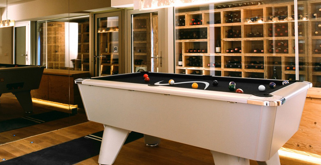 Sauna & hammam with eucalyptus feed, Massage/therapy room, Hot tub handmade out of Canadian cedar wood, Games room with billiard table and darts