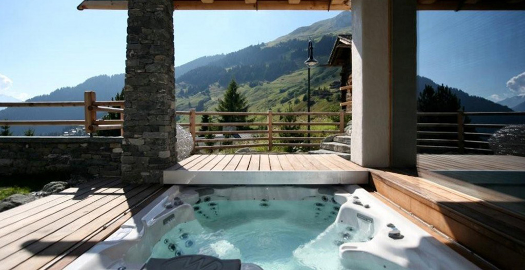 Jacuzzi bath with mountain views
