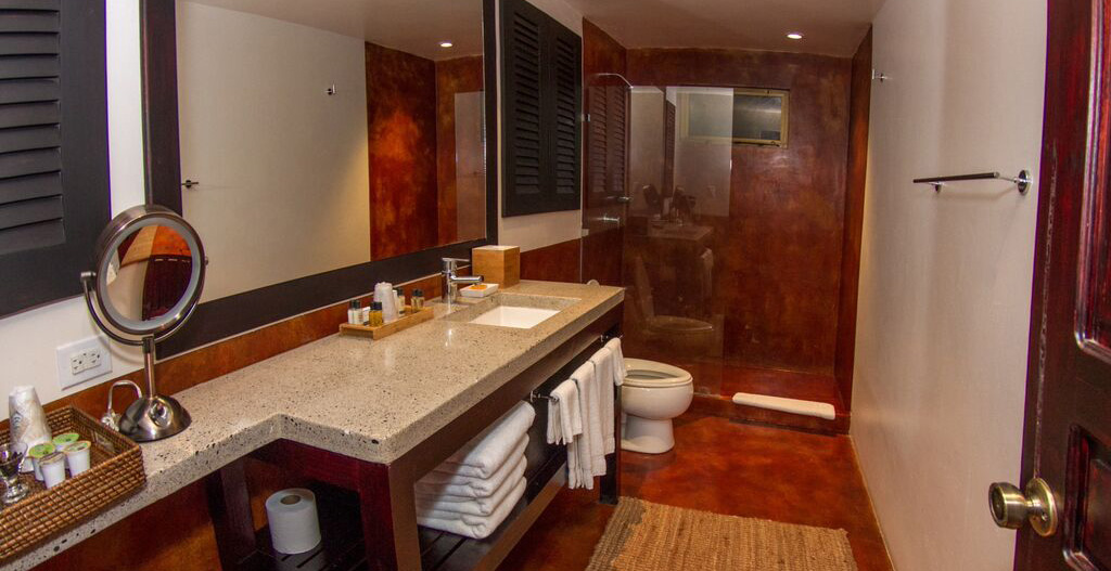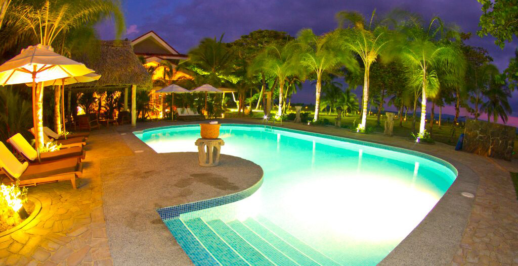 On our property, our guests will discover beautiful tropical gardens, our Lodge marina, a salt water filtered pool and palapa lounge area, a regulation size bocce ball court, 2 open air beachfront lounge areas, our organic herb geenhouse, acres of organic fruit gardens and miles of black sand beach bordering the Golfo Dulce. Our public space houses an elegant fountain reception area, gift shop, restaurant and bar and multiple indoor outdoor lounge and relaxation areas.