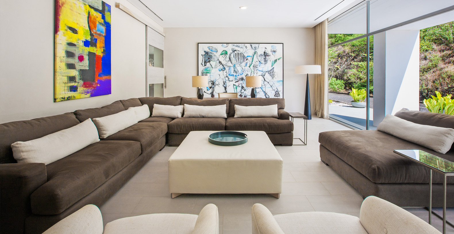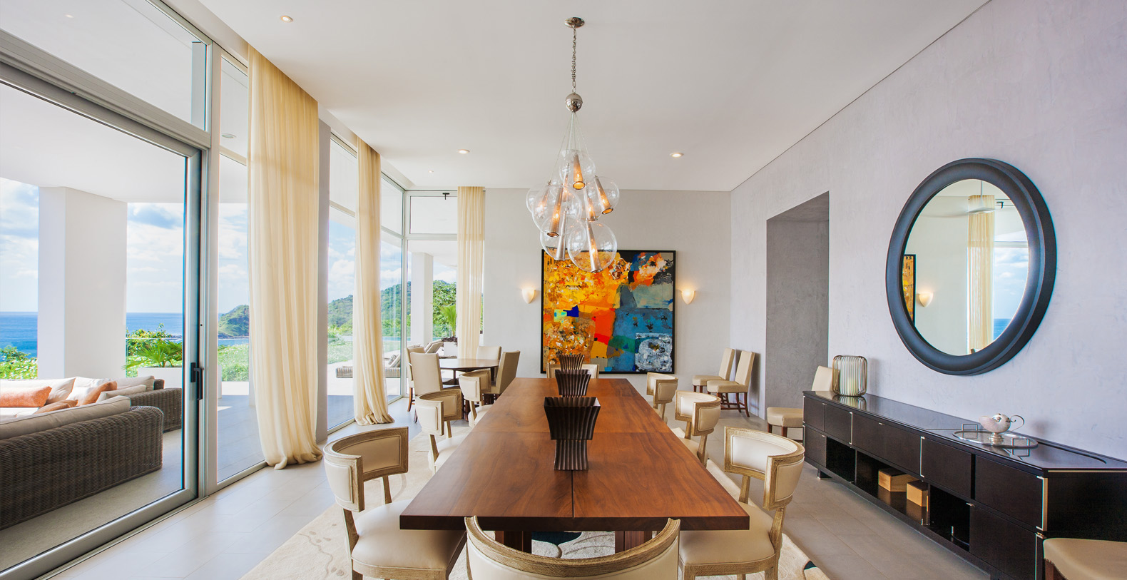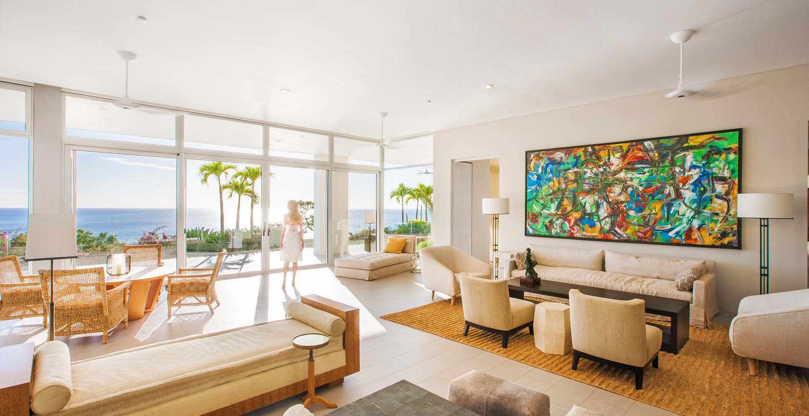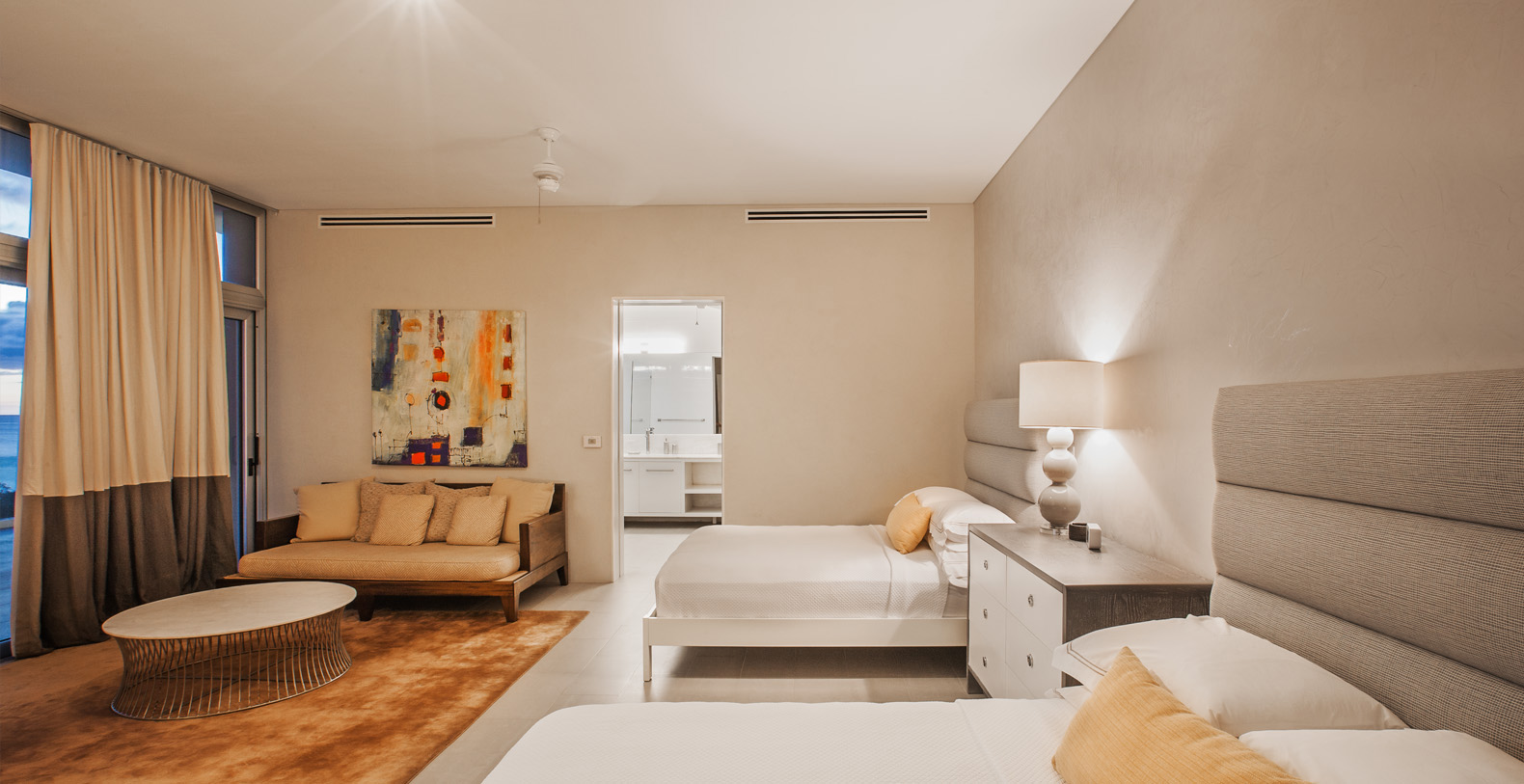 The Master Suite and Third Suite each have King size beds and en suite bathrooms, containing wonderful sitting areas furbished with contemporary art and decor in full-view of the ocean (the Third contains an additional twin size bed). The Second and Fourth Suite each have two Queen size beds and en suite bathrooms, with amazing views and wonderful modern furnishings as well (the Second contains an additional twin size bed). The Fifth suite has 5 twin beds, great for singles or adults not wanting to share space, while the Sixth suite has 2 twin beds; each have their own bathroom (there are 3 additional half bathrooms throughout the house). In total, La Florcita is large enough to accommodate 16 adults and 4 children.