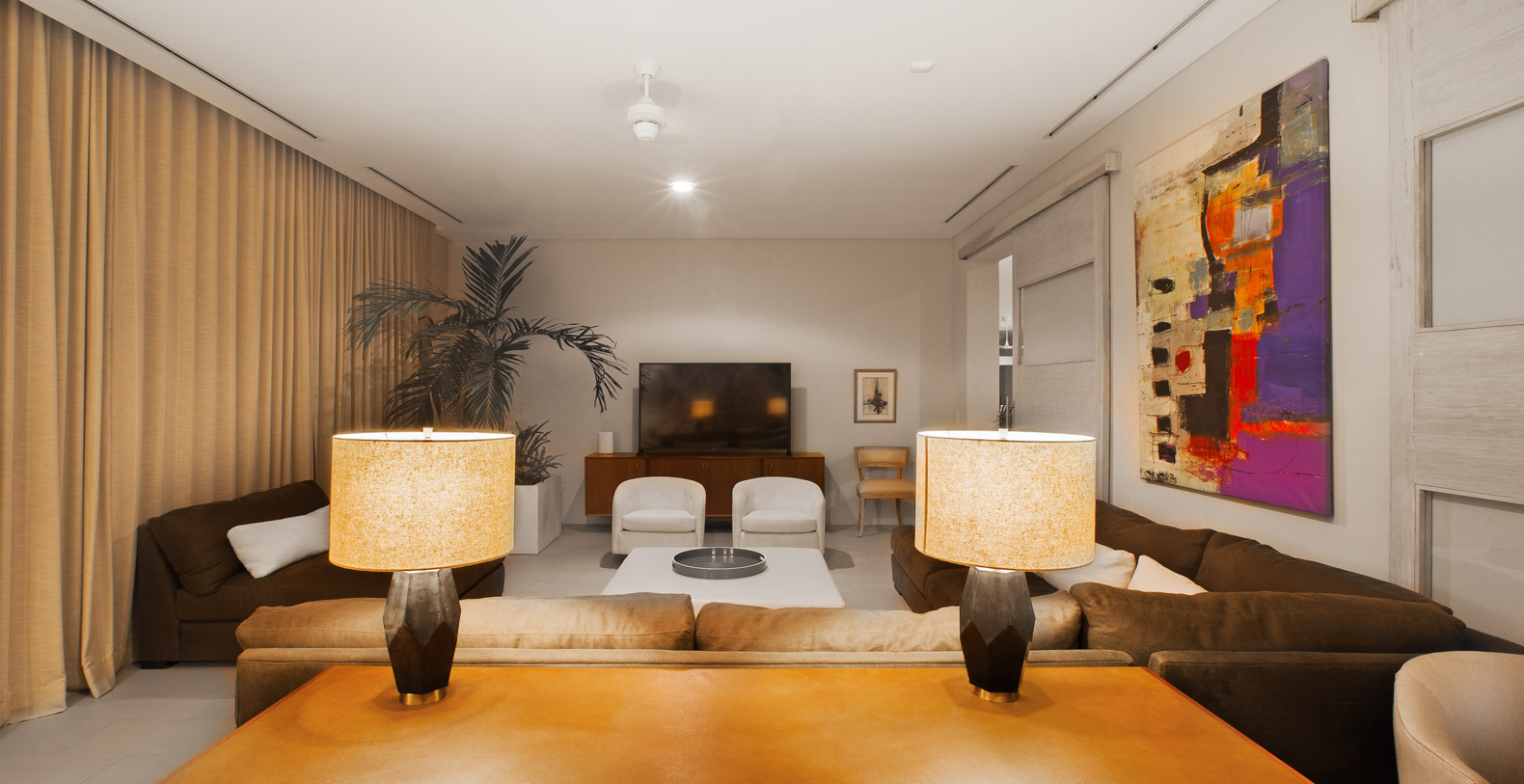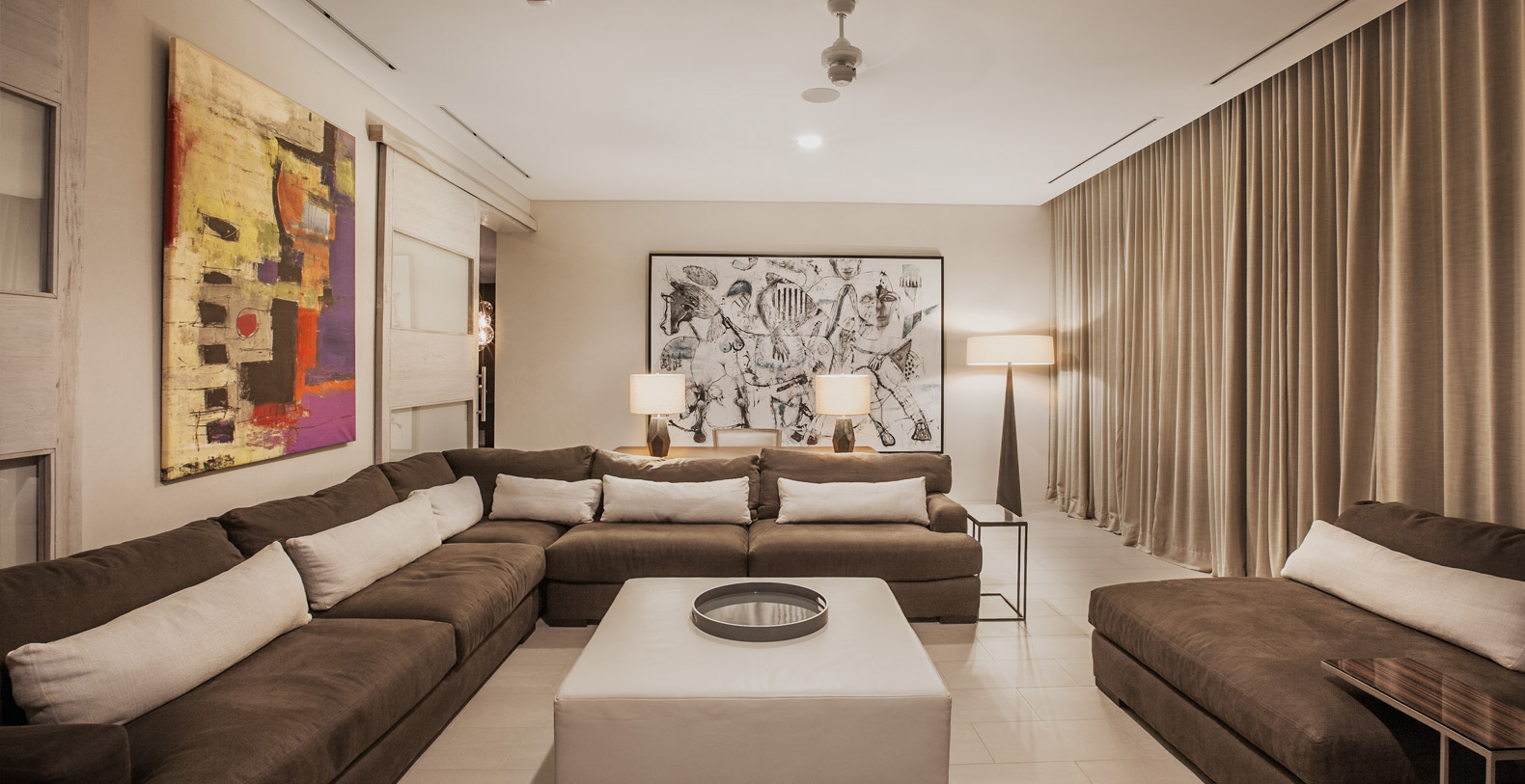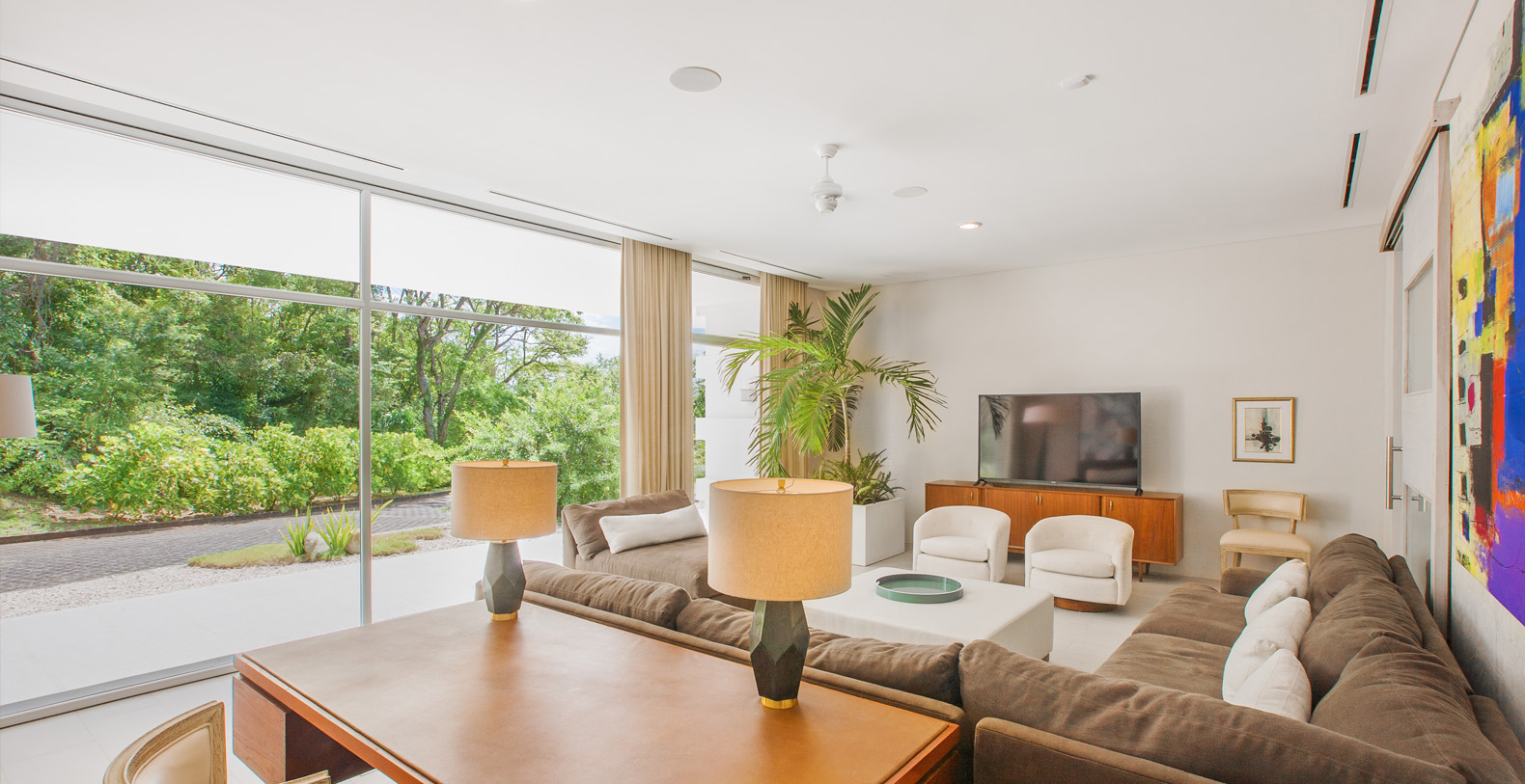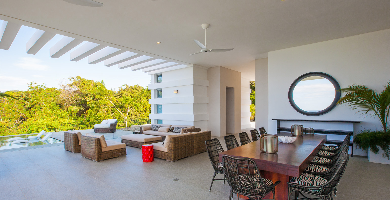 The Master Suite and Third Suite each have King size beds and en suite bathrooms, containing wonderful sitting areas furbished with contemporary art and decor in full-view of the ocean (the Third contains an additional twin size bed). The Second and Fourth Suite each have two Queen size beds and en suite bathrooms, with amazing views and wonderful modern furnishings as well (the Second contains an additional twin size bed). The Fifth suite has 5 twin beds, great for singles or adults not wanting to share space, while the Sixth suite has 2 twin beds; each have their own bathroom (there are 3 additional half bathrooms throughout the house). In total, La Florcita is large enough to accommodate 16 adults and 4 children.
