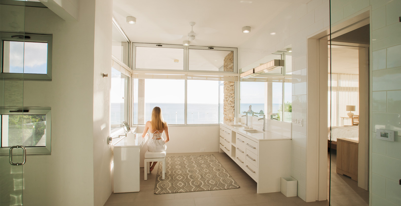 Each bedroom is uniquely designed, combining elements of modern architecture with the seamless balance of nature. The ocean can be viewed from almost every room in the house due to its numerous windows, starting the day with natural light in the mornings and enjoying the sunset above pristine waters at night. The serene natural setting emphasizes the uniqueness of this property.