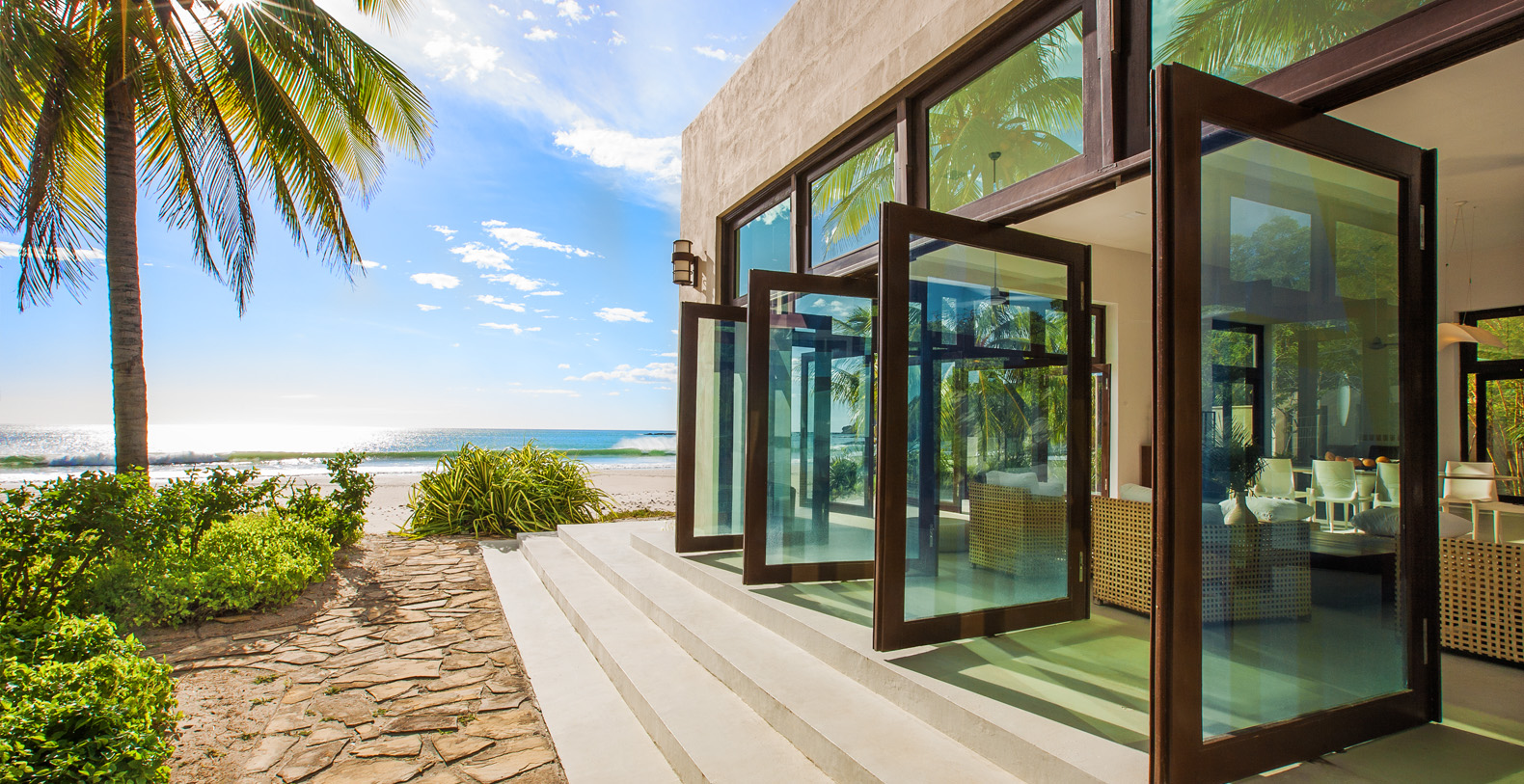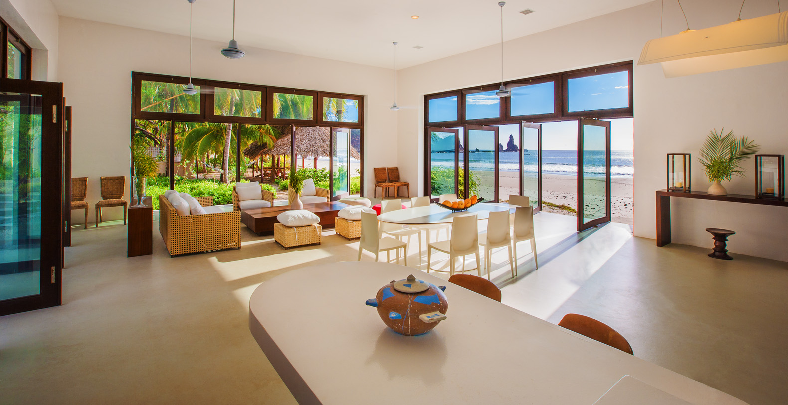 La Florcita is a beautiful modern home located on a pristine private beach on the Nicaraguan Coast, within one of the most untouched natural environments in the Northern Pacific. The property covers ~17,000 square feet on a private 120 acres estate, and contains six-bedrooms with en suite bathrooms and seamless indoor/outdoor living space flow; it is situated at an elevation of 130 feet above sea level with spectacular views of Costa Rica to the south and the Nicaraguan coast line to the north. The property directly touches two beaches, with over 1,700 feet of contiguous shoreline.
