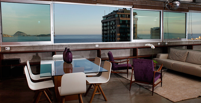 The carefully selected furnishings, elegant industrial style flooring and exposed brickwork give the apartment a refined and modern aesthetic. Magnificent views of the city, ocean and mountains of Rio, brings the city’s natural beauty right into your home.