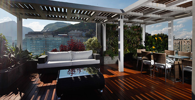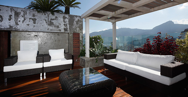Upstairs is a lounge with a comfortable sofa bed connected to an executive quality office room perfect for any work you have. From the lounge you can take the stairs up to one of the property’s highlights, the stunning terrace with a swimming pool and an unforgettable panoramic view of Rio de Janeiro. You will be able to relax in comfort with an incredible vista of the Ipanema bay. From the mountains of Niteroi to sunsets over the famous ‘Dois Irmaos’ and “Pedra da Gavea’ the view is a rare treasure which will leave you wanting to return to Rio’s beauty.