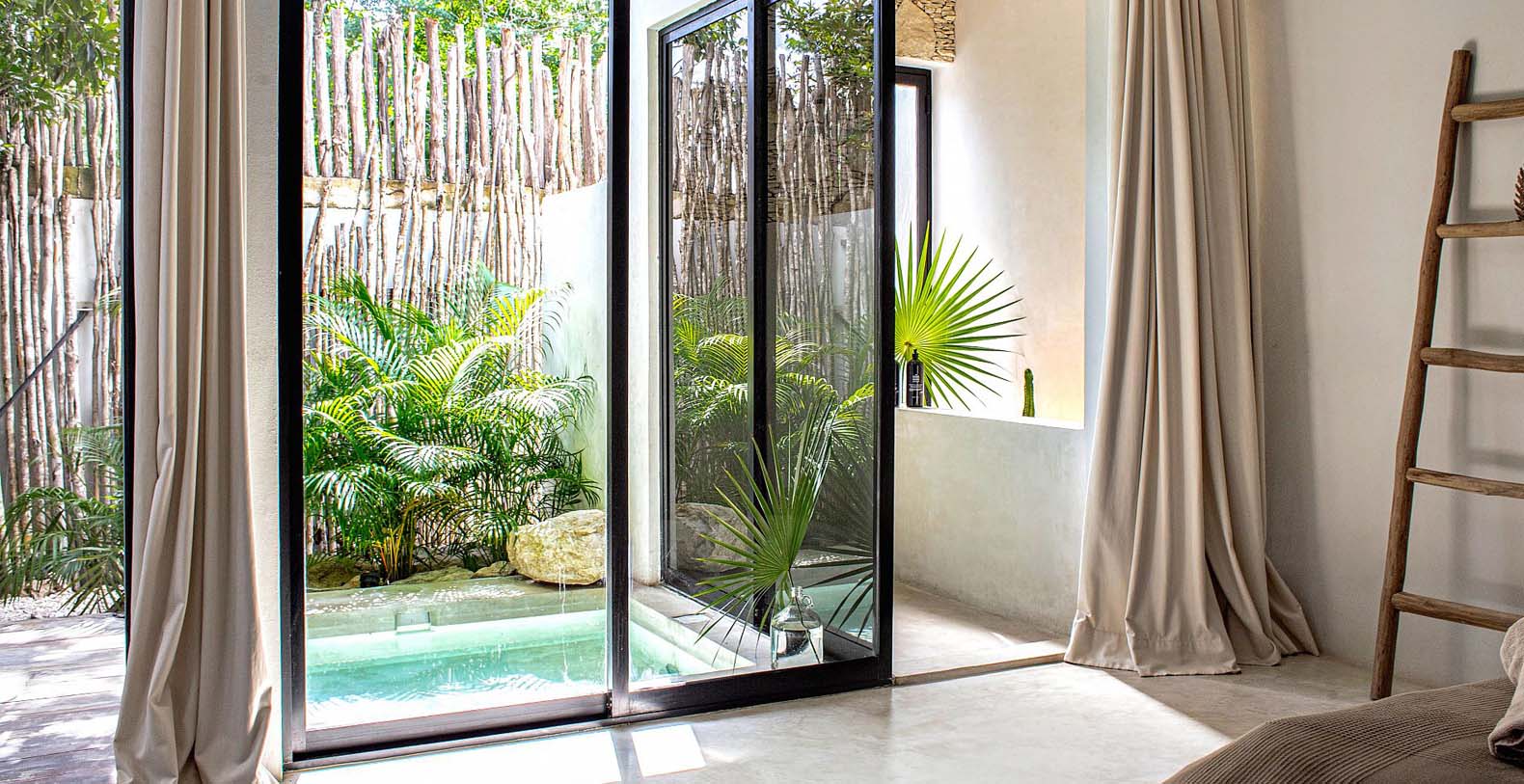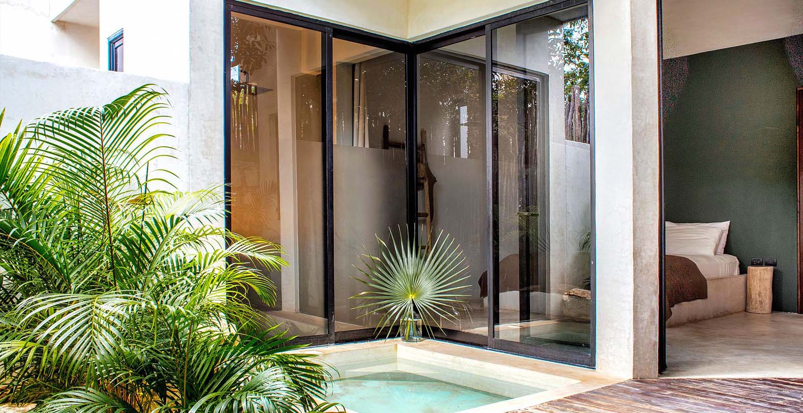 Each room is unique, 4 private pools, baths with glass ceilings or outdoor shower, our design will enchant your stay. The suites open onto a spectacular main swimming pool, a bonfire in the garden and a lounge with views over the jungle from sunrise to sunset.