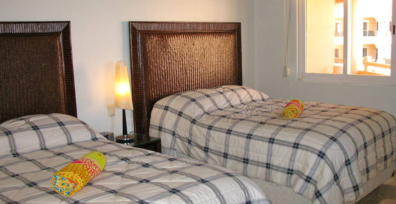 There are two beach view master ensuite bedrooms. Each has a king size bed and ample closet space. The ensuite guest bedroom has 2 full beds.