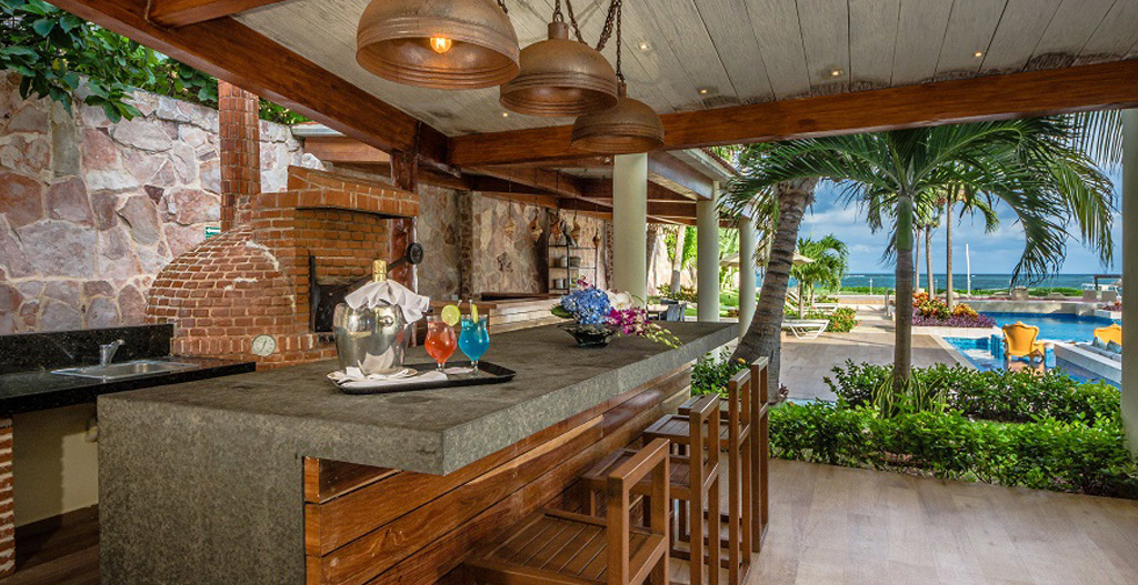 At Azul Villa Casa Del Mar, the luxury is in the details. Beach chic is blended with tropical elegance to provide a soothing aesthetic. Italian marble and deep mahogany finishes span the spacious Villa, creating the perfect harmony of casual elegance. Expect the unexpected; rainforest showers, indoor Jacuzzis, an al fresco dining area for 12, a brick pizza oven in the backyard, and perfectly coifed gardens surround it all.