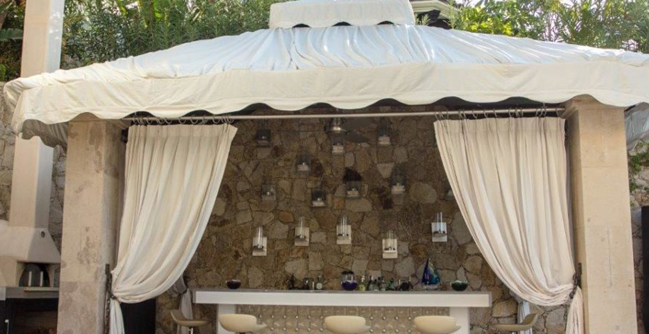 On the main terrace you’ll find a bar handmade out of bottles of Tequila Patrón. Gourmets will love the wood pizza oven, and a marble counter adds a touch of refinement to a gorgeous outdoor space.
