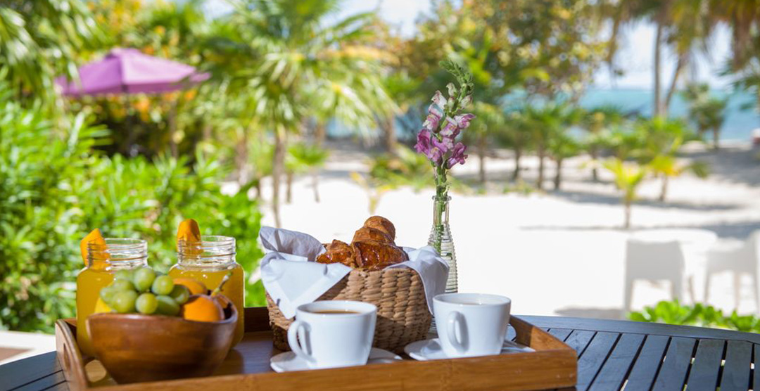 Savor the breathtaking sunrises over the Caribbean, and enjoy gourmet meals prepared by David, your personal chef, underneath the palapa in the open air great room. The refreshing ocean breezes keep you comfortable throughout the day.