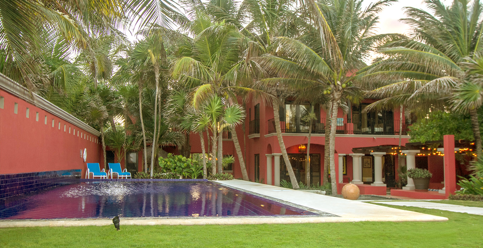 This exquisite home is located on the Caribbean coast of Mexico, just north of Tulum on the Riviera Maya.