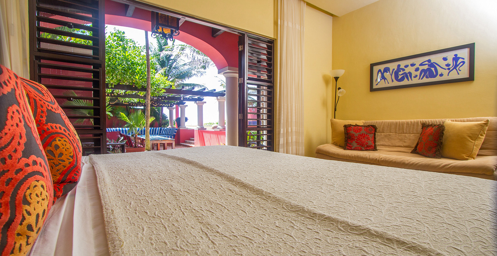 Warm colors and contemporary furnishings provide a relaxing environment to unwind any time of the year. All of the five guest suites have balconies with stunning views, warm tropical breezes and of course luxury bedding. All of our suites have their own bath and all have a luxurious king size bed.