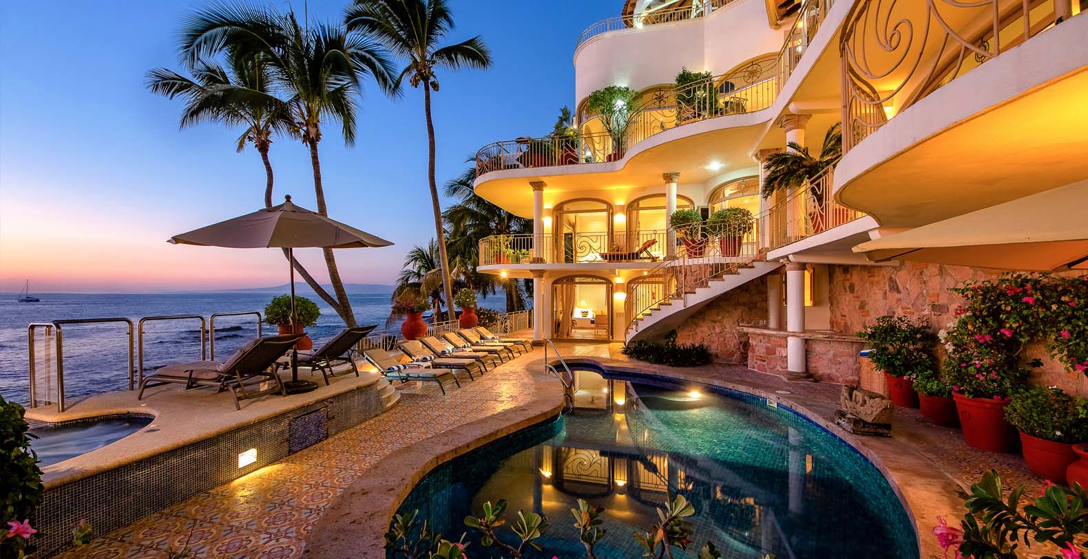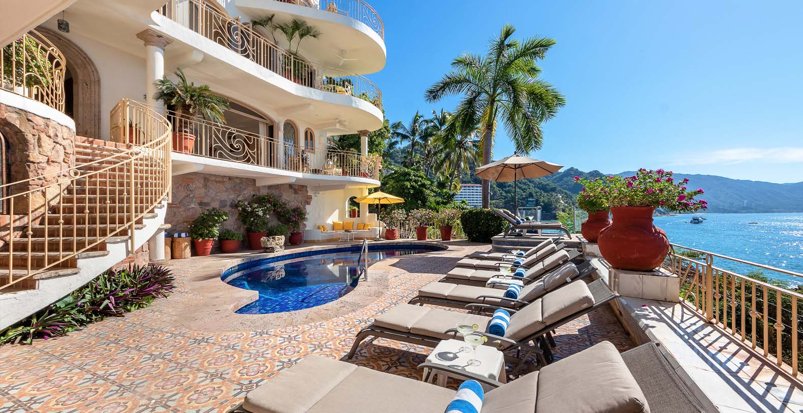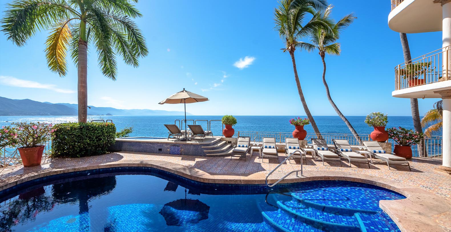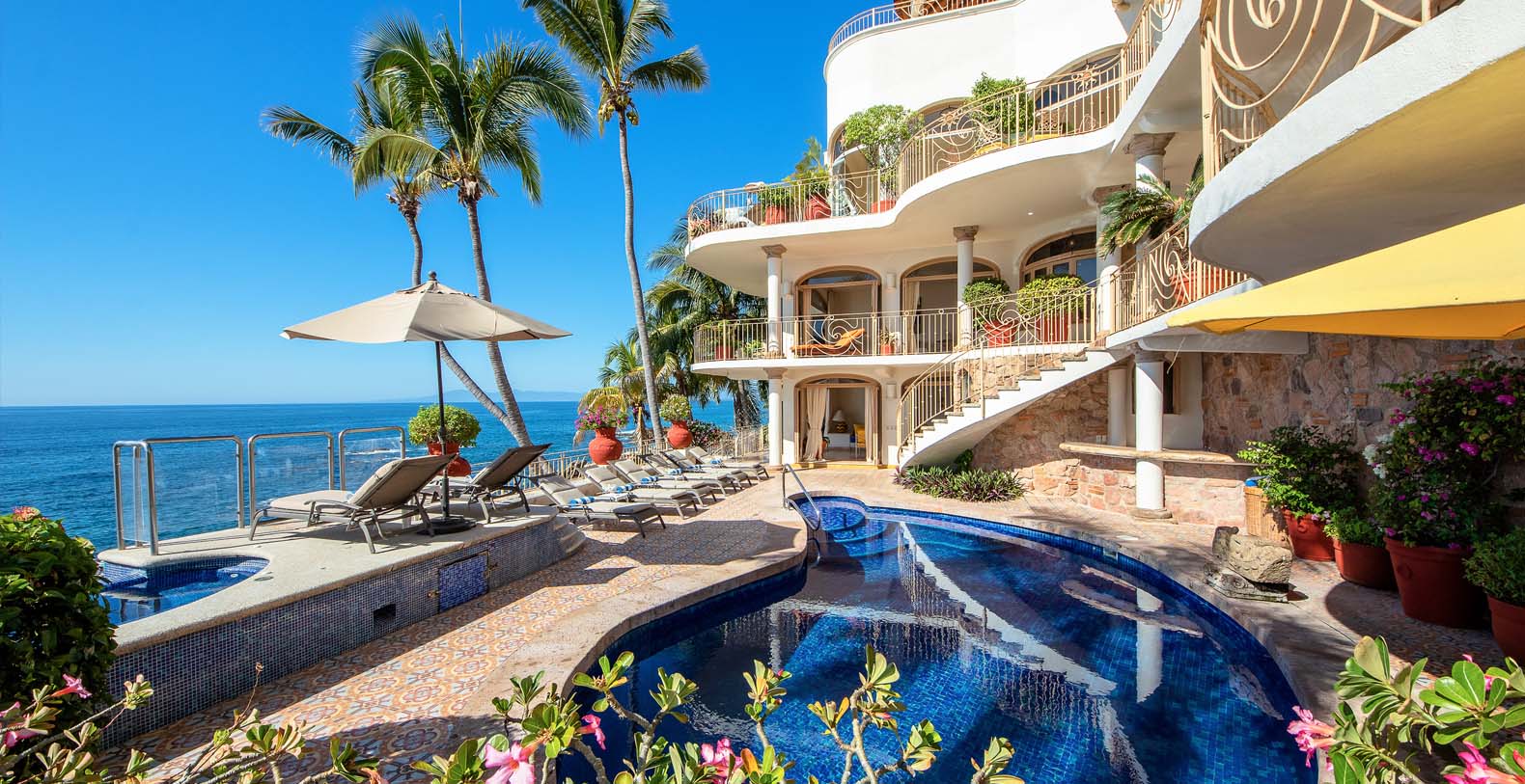 Casa Buena Vida is a spectacular 5 Bedroom oceanfront luxury villa located in Lower Conchas Chinas, less than a mile from all the charm, energy, and entertainment of downtown Puerto Vallarta.