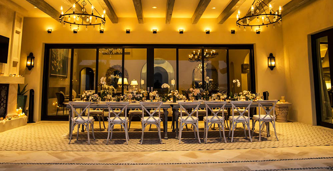 From the chandeliers and high ceilings to the luxury furniture, every room inside Casa Chanel brims with sophistication and style. The neutral tones of the surfaces create a calm and refreshing ambience throughout the 12,000 square feet of interior space. Other amenities, such as a palapa and outdoor stereo system, are also great for intimate gatherings – especially at sunset!