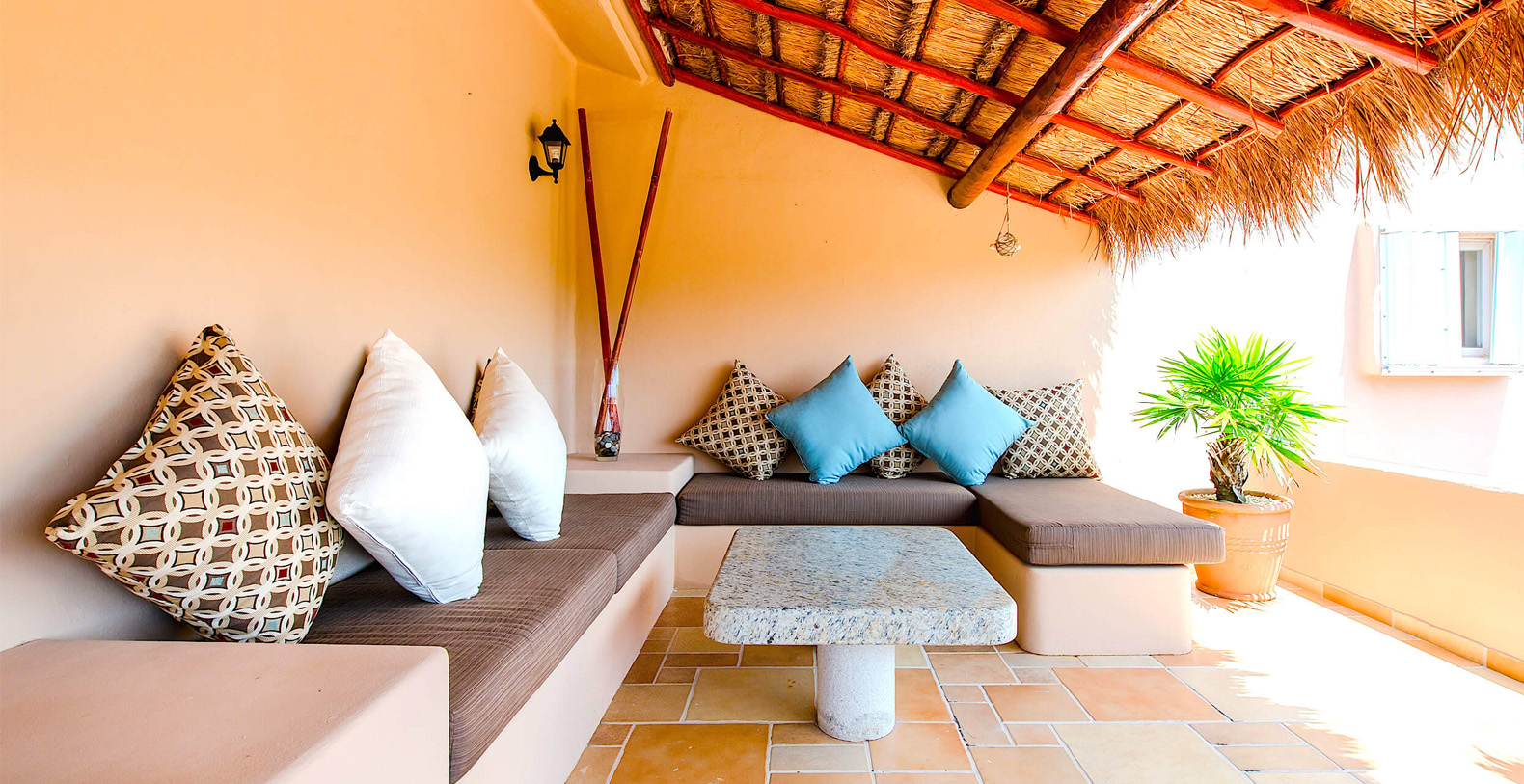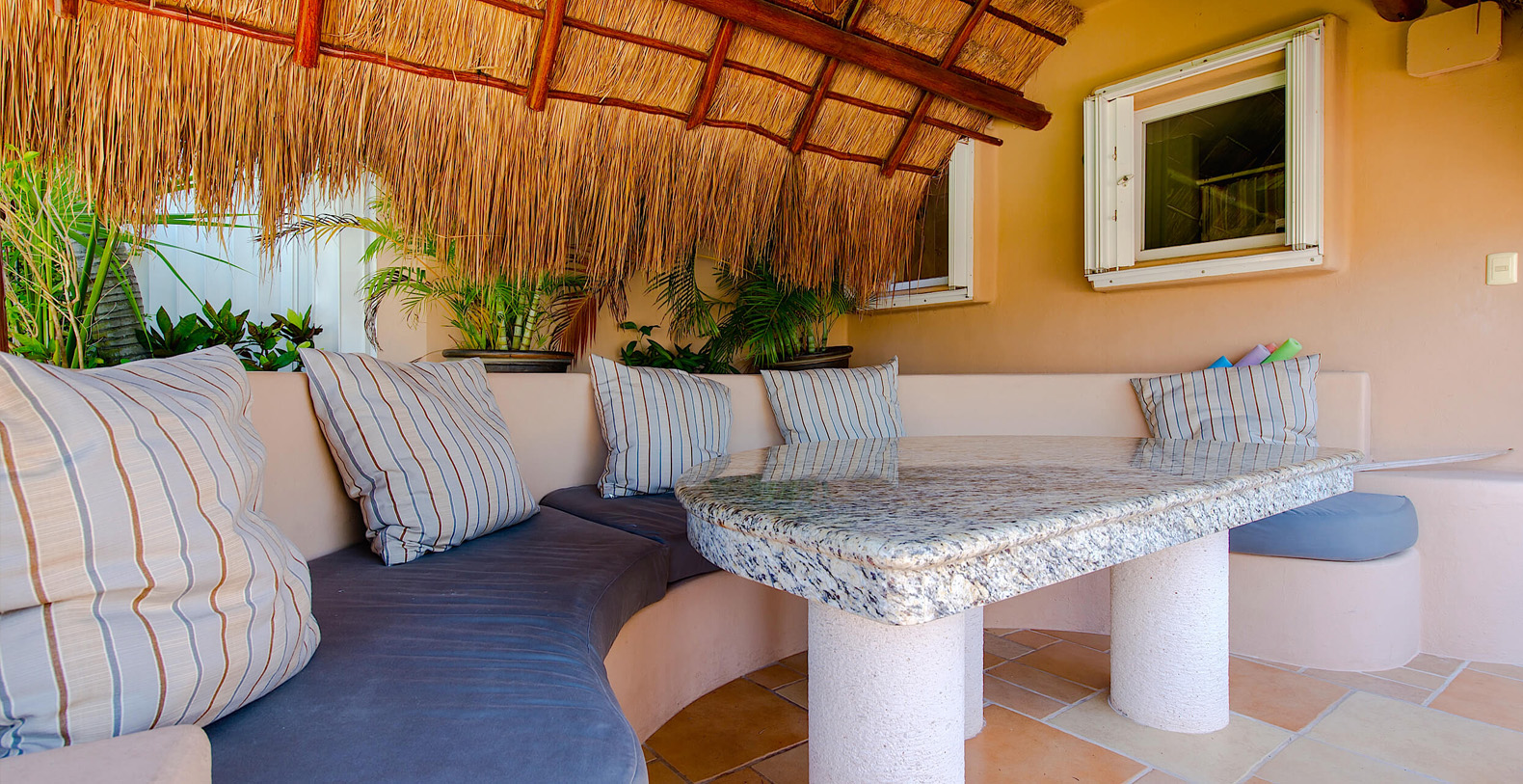 The upper floor leads to two further King suites and a wonderful terrace with a large palapa and sofa area with views over the jungle …perfect for relaxing!!