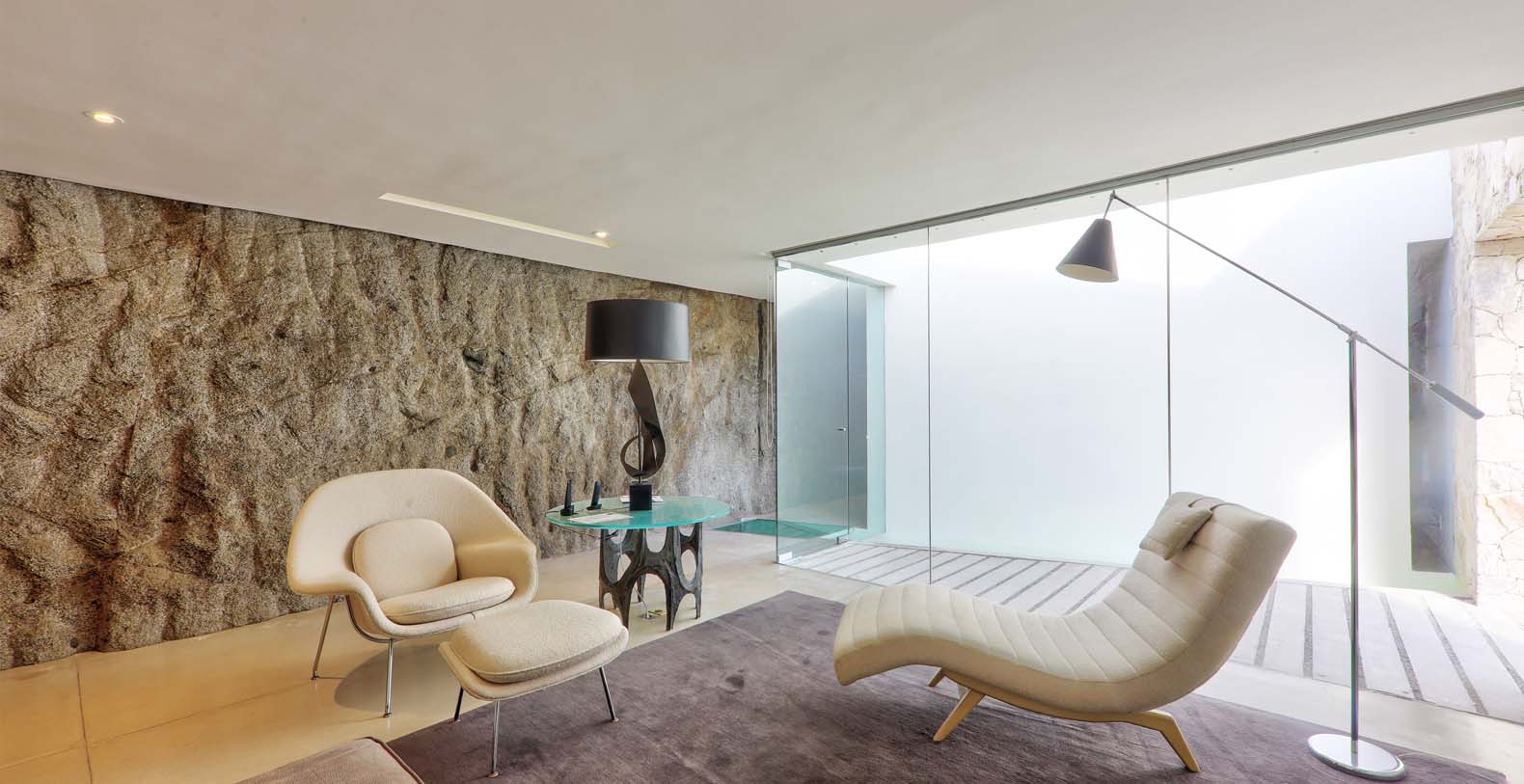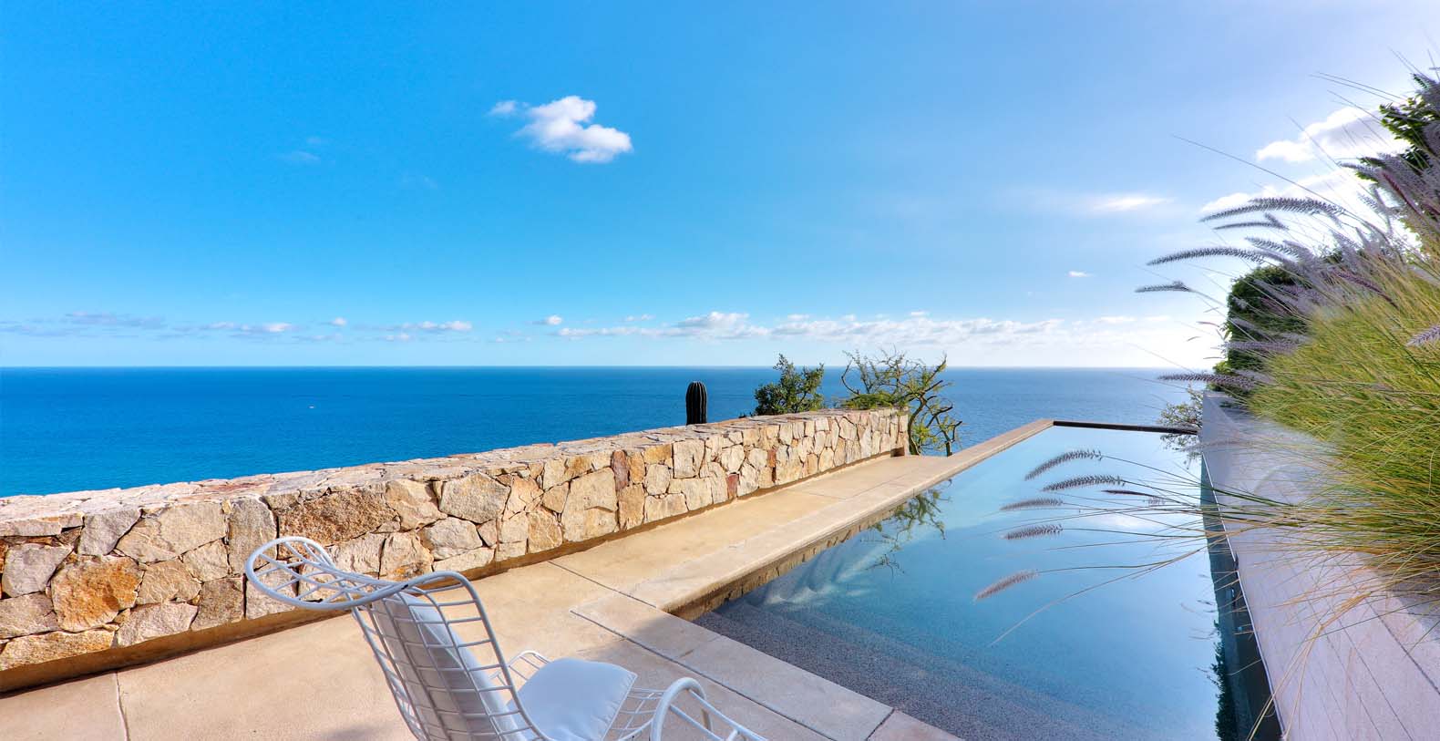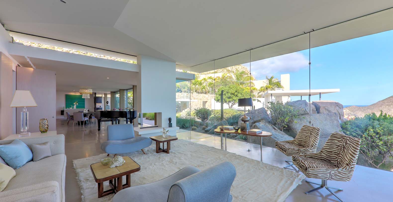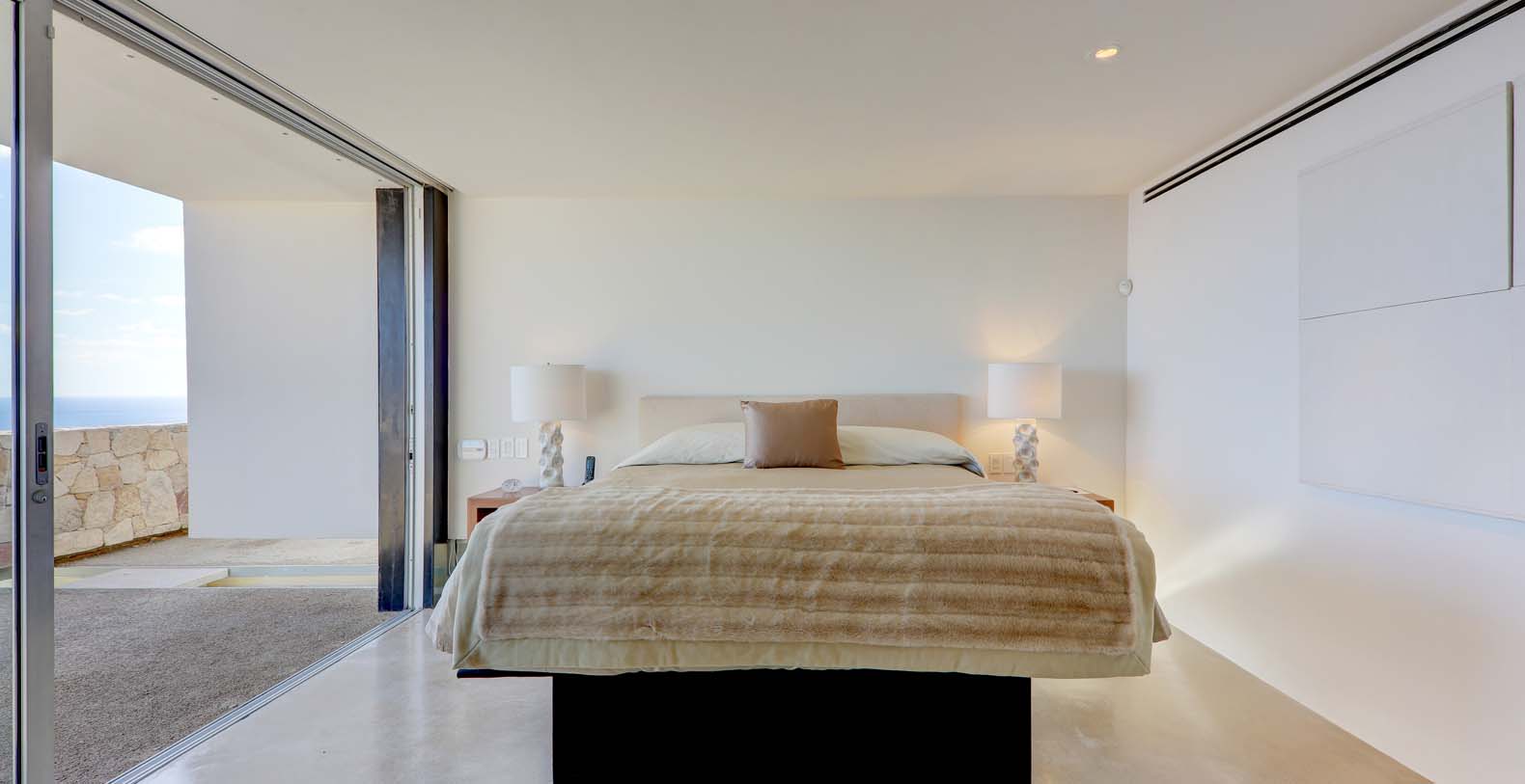 Architect Steve Harris designed this unique and modern gem combining minimalist design with rustic touches. Literally built into the mountain, the indoors melds seamlessly with the outdoors and the outdoors blends into the indoors. Solid glass walls provide unobstructed views of the Pacific Ocean and allow you to connect with the abundant wildlife which is always visible in the waters around Cabo.