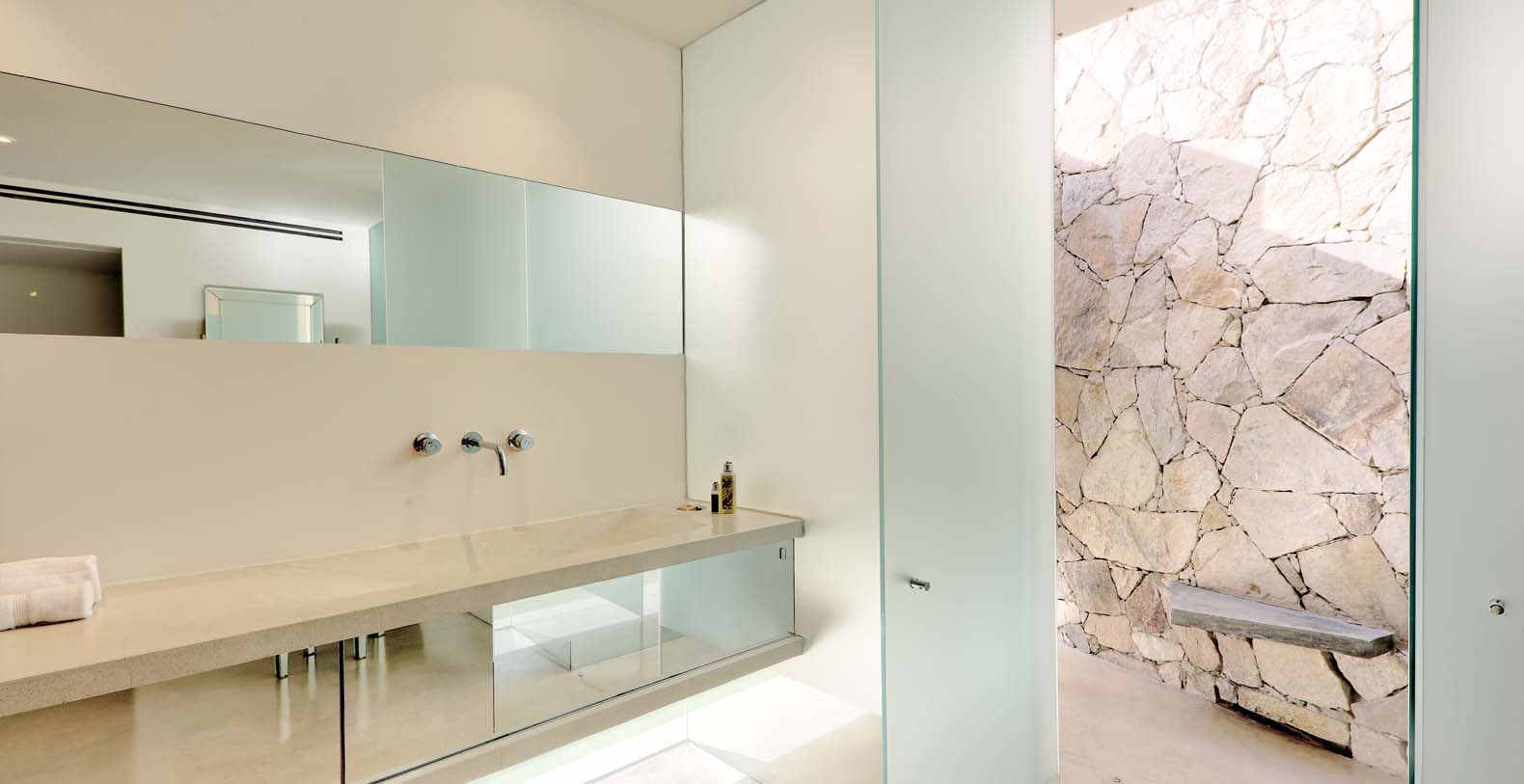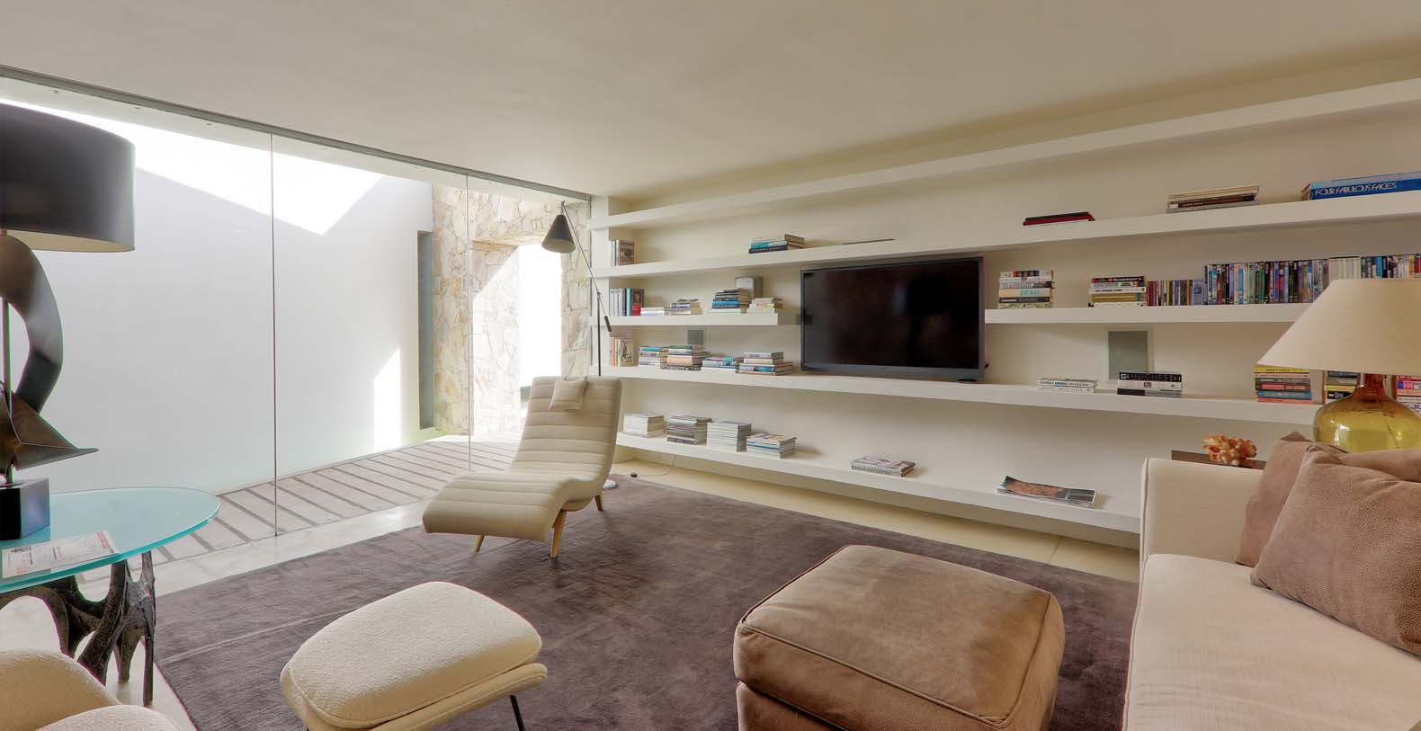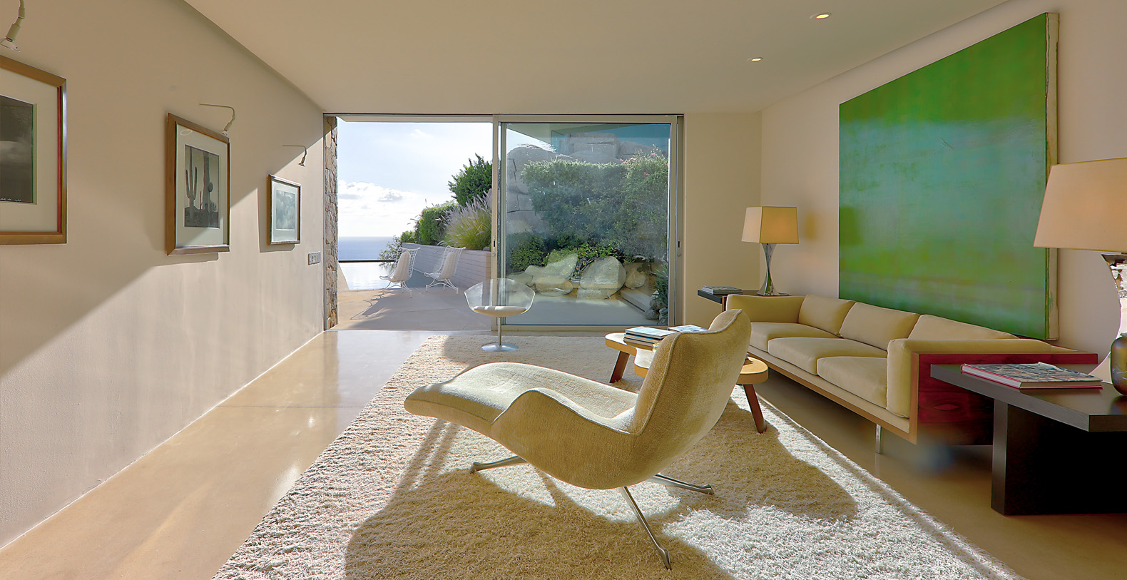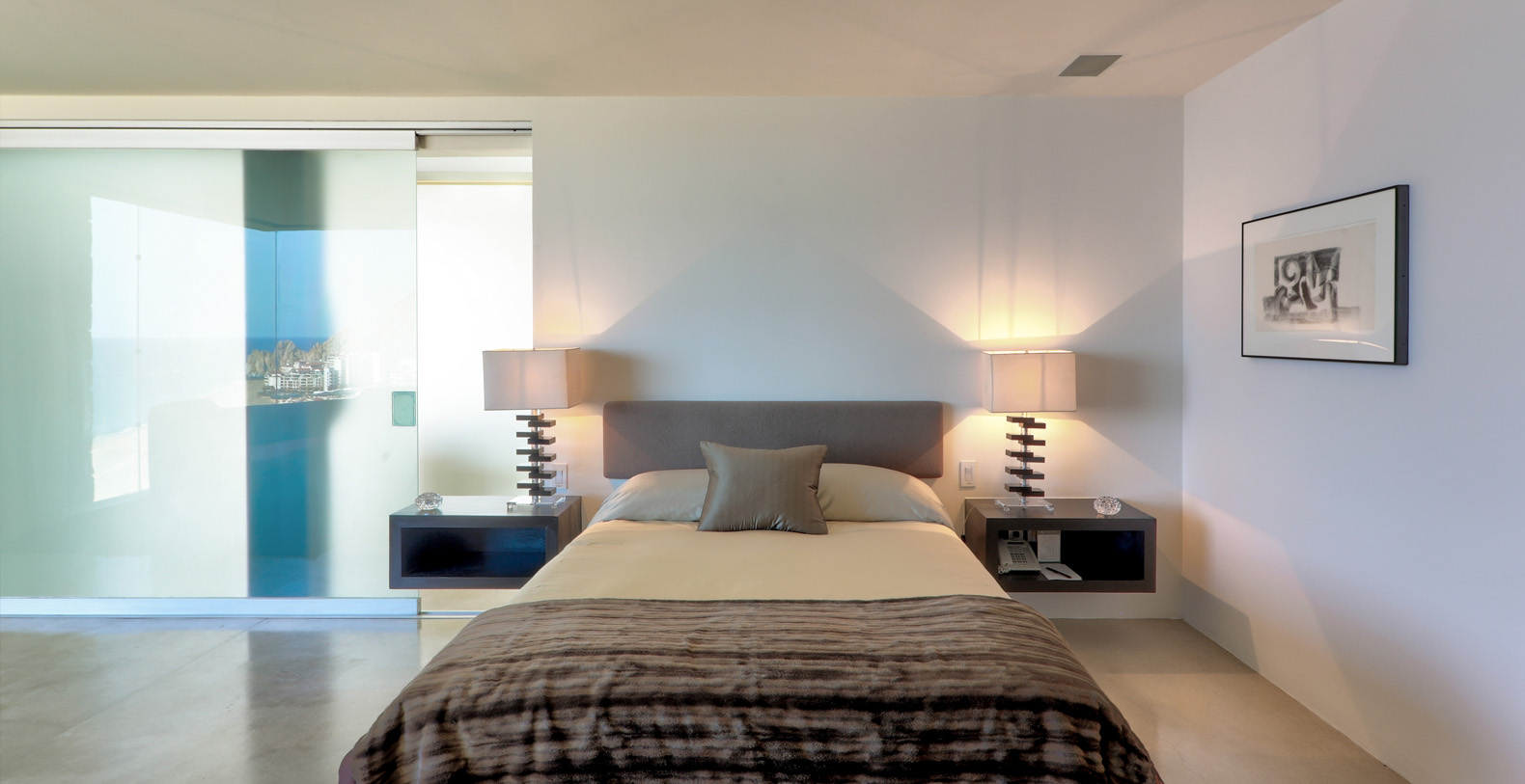 Architect Steve Harris designed this unique and modern gem combining minimalist design with rustic touches. Literally built into the mountain, the indoors melds seamlessly with the outdoors and the outdoors blends into the indoors. Solid glass walls provide unobstructed views of the Pacific Ocean and allow you to connect with the abundant wildlife which is always visible in the waters around Cabo.