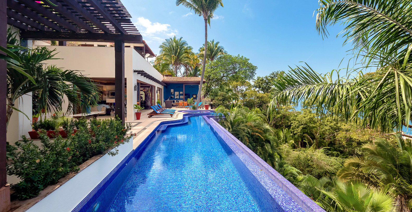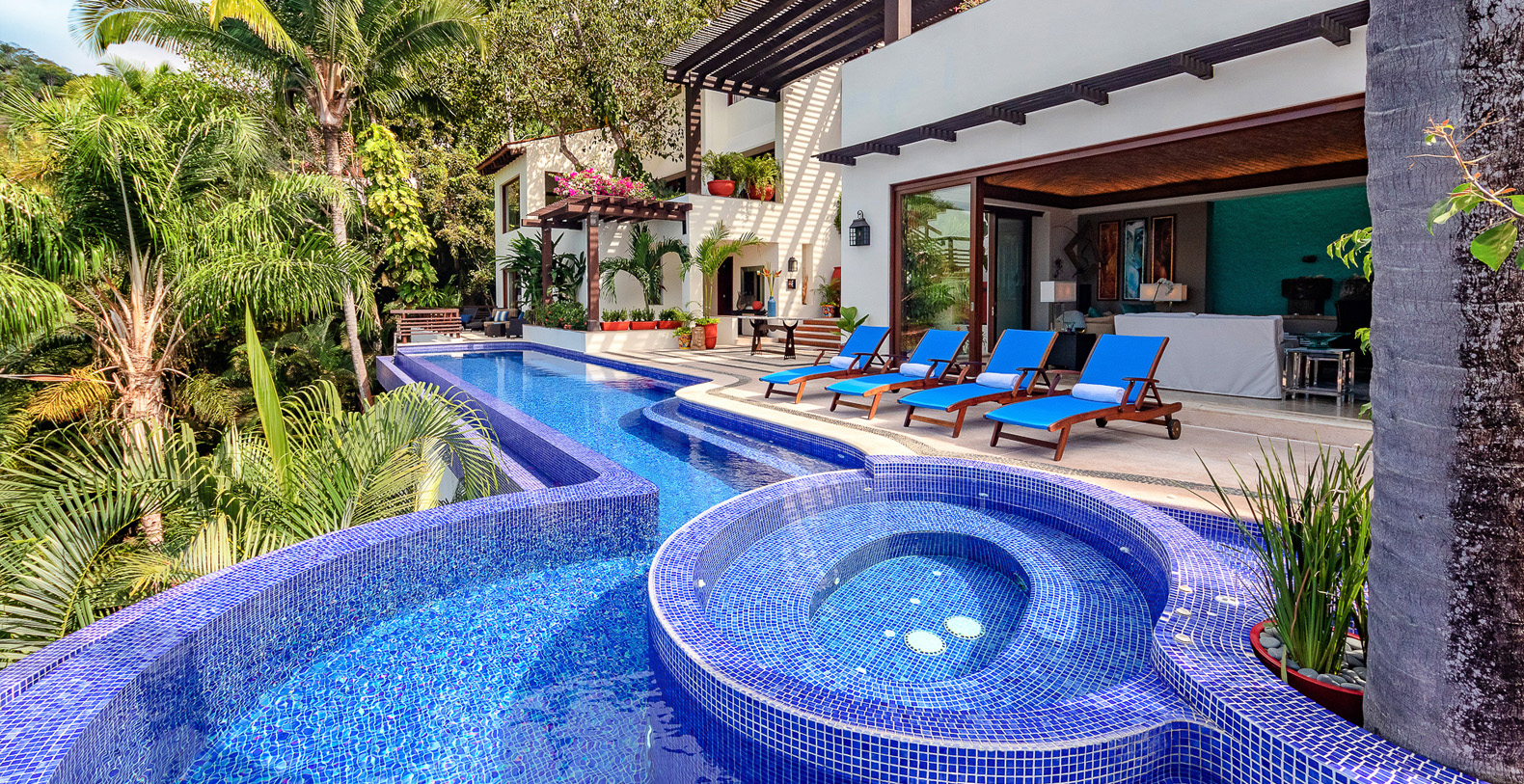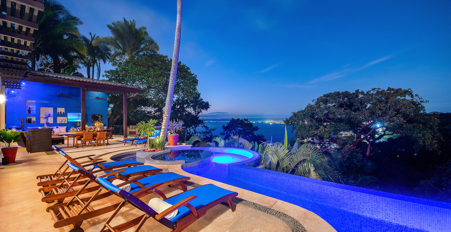 Real de Conchas Chinas is an exclusive gated community with 24-hour gate staff, perched atop the upper Conchas Chinas hills with fantastic ocean, city, and mountain views. This fabulous private villa has 5 bedrooms, each with a living area and bathroom. The large heated infinity-edge pool has an integrated spa and breathtaking views.