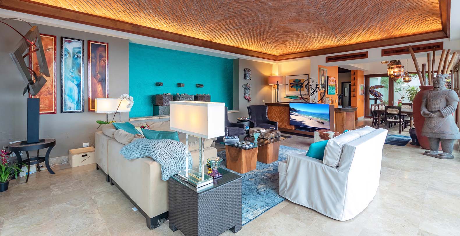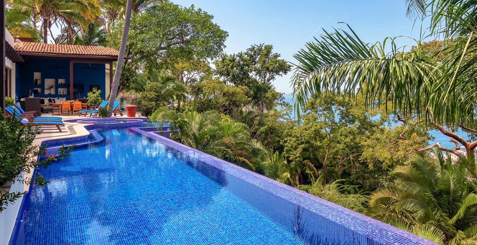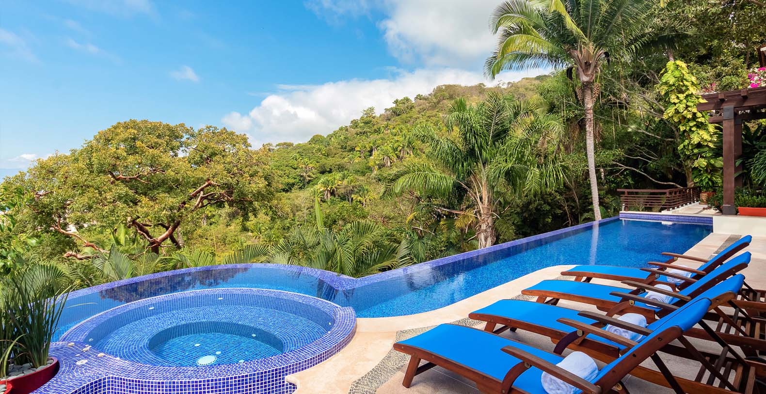 Real de Conchas Chinas is an exclusive gated community with 24-hour gate staff, perched atop the upper Conchas Chinas hills with fantastic ocean, city, and mountain views. This fabulous private villa has 5 bedrooms, each with a living area and bathroom. The large heated infinity-edge pool has an integrated spa and breathtaking views.